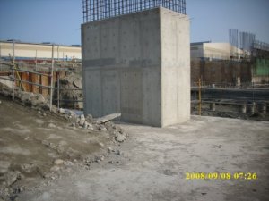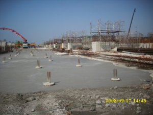 這是樁頭澆置完的全貌,基礎的鋼筋必須跟樁頭上的鋼筋綁在一起,以預防基礎下陷。而10公分的PC是為了放樣,所謂的放樣,簡單來說就是將工程圖上的東西依照他的位置畫在現場。