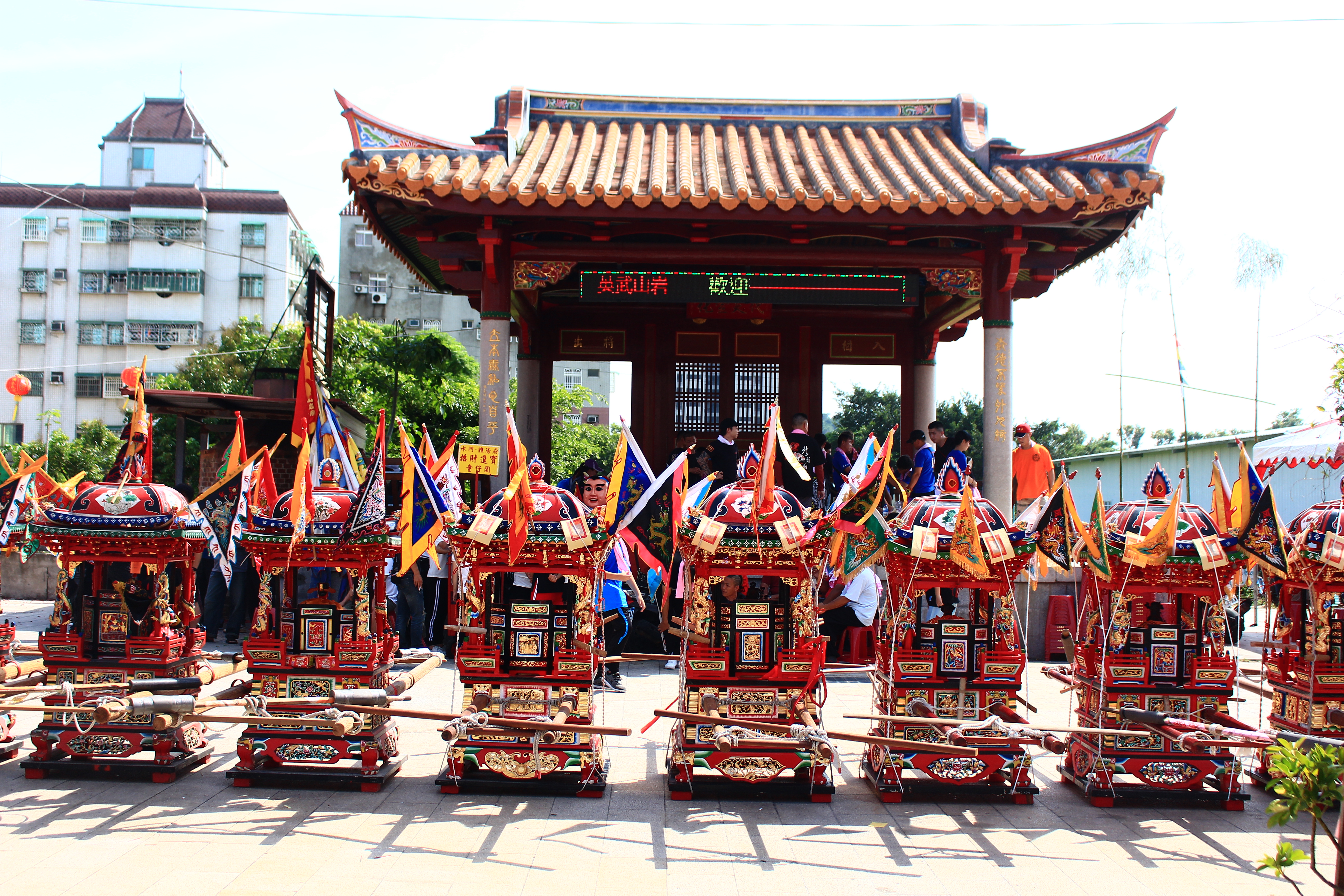 2019年6月8日13:00神明一字排開,準備出巡。這天艷陽高照,只能說一個熱。卻完全的不減民眾的熱情。