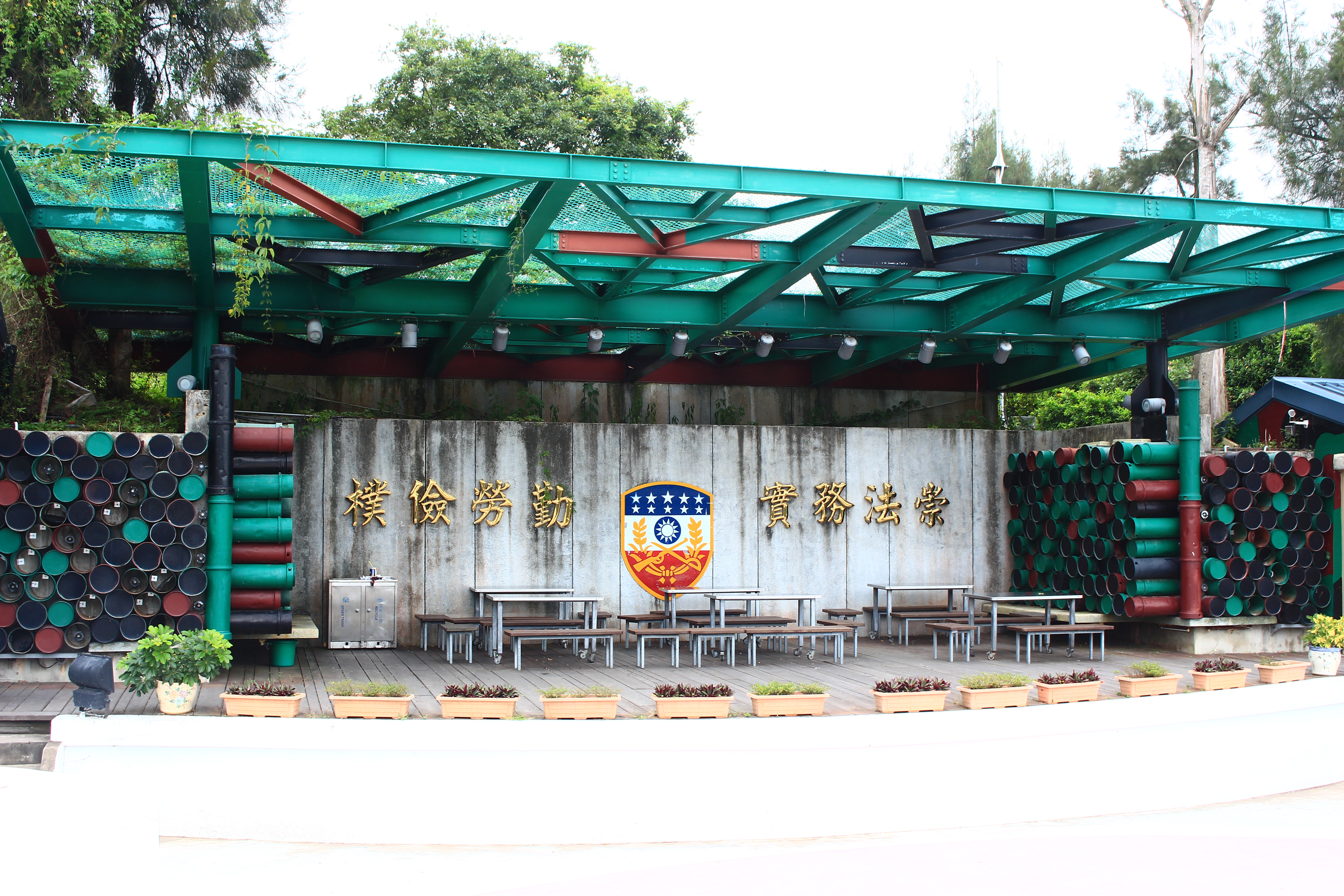 福利社的休息處,看造型,早期應該是司令台之類的。