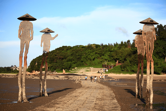 The stone statue at the back of Jiangong Reef is the stone statue of Zheng Chenggong, the holy king of Kaitai. The stone statue looks at his hometown of Fujian. This is the place where most people take pictures besides the oyster man installation art.