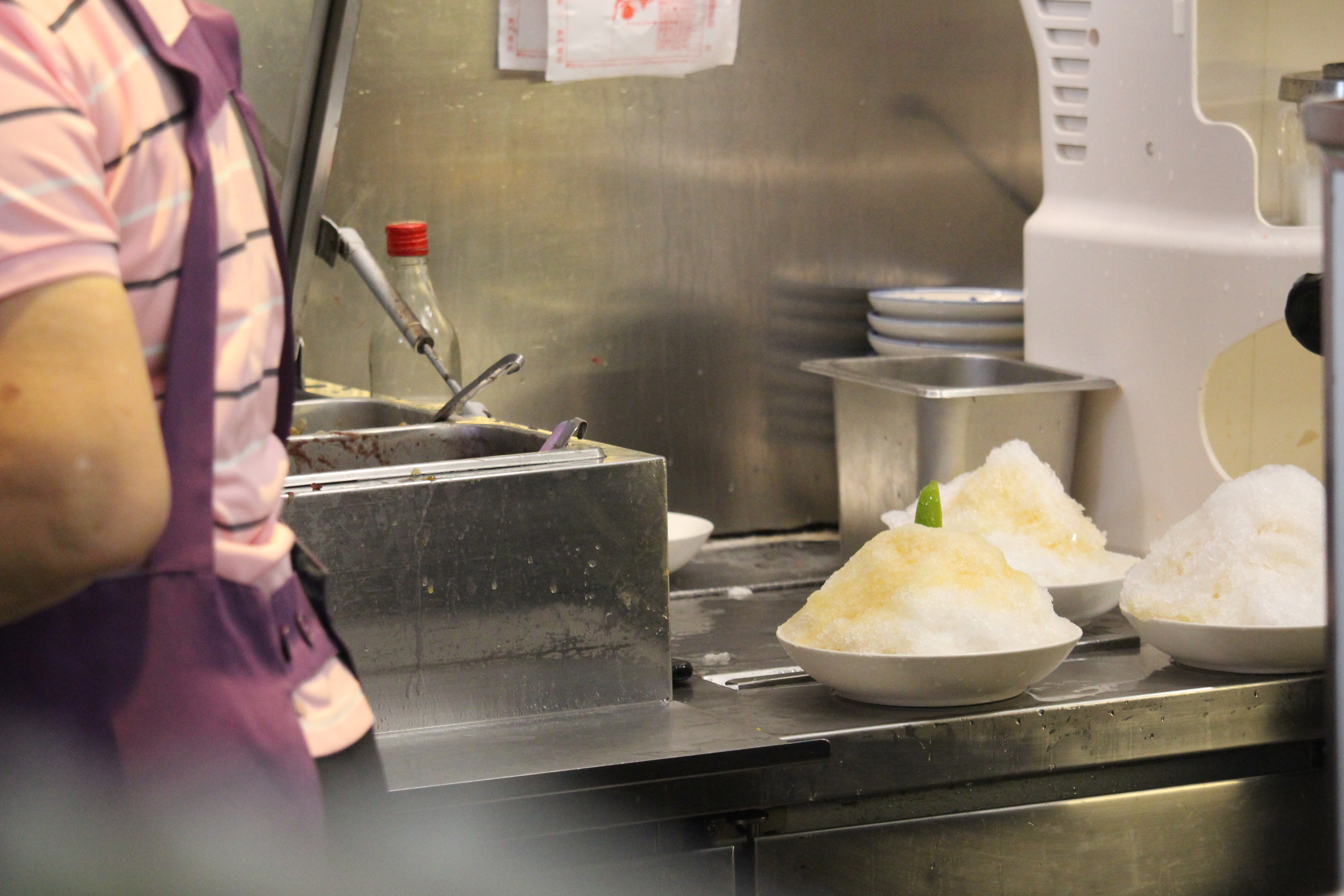 製作冰品的過程,小小的空間內,3個員工忙碌著應付著外面眾多的客人,拍照技術有點差,就將就著看吧。