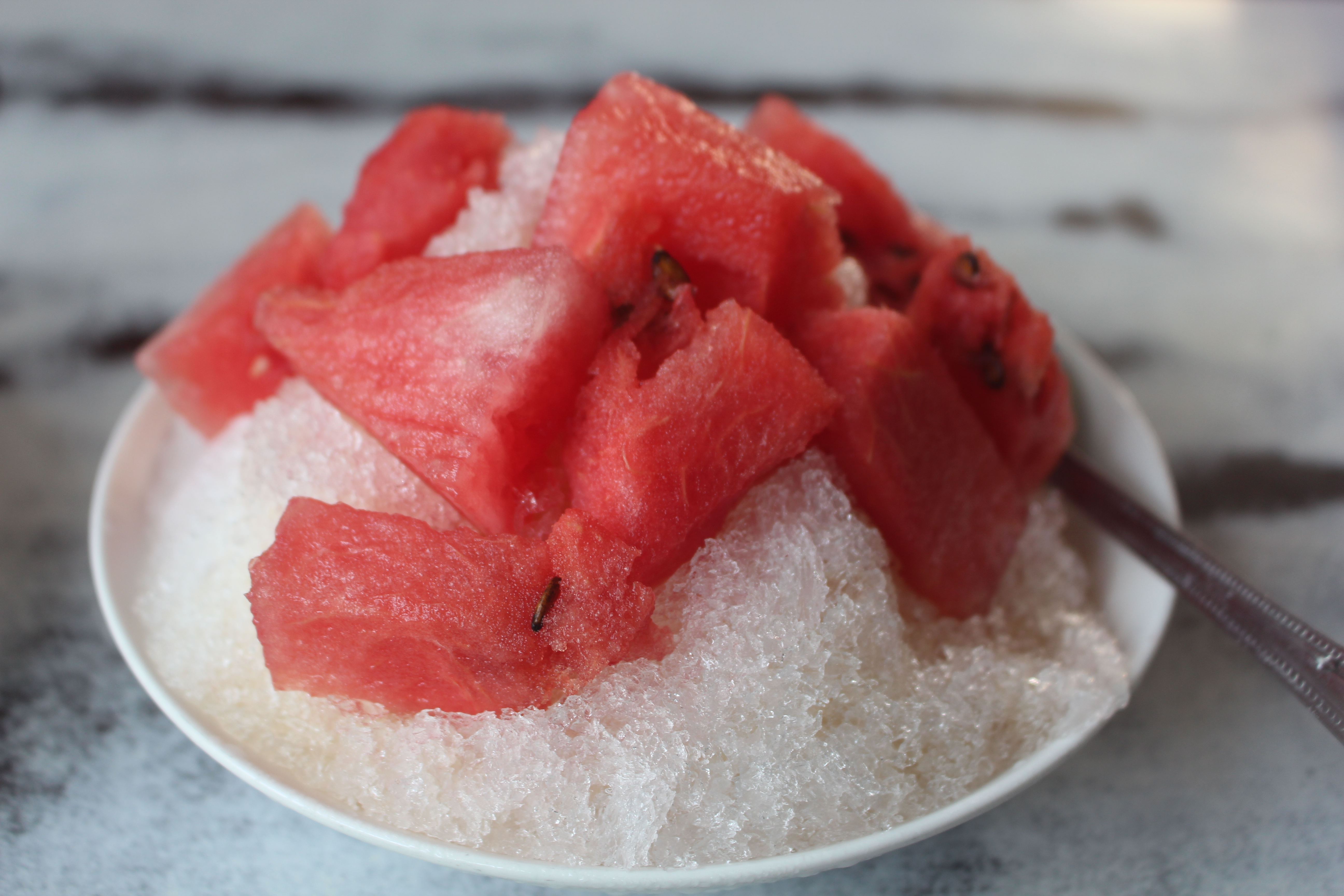 可可的西瓜冰,水果的甜,配上剉冰,冰底部有淋上糖水。雖然已經入秋,可是在台南吃上一碗這樣的冰,真的是一大享受。