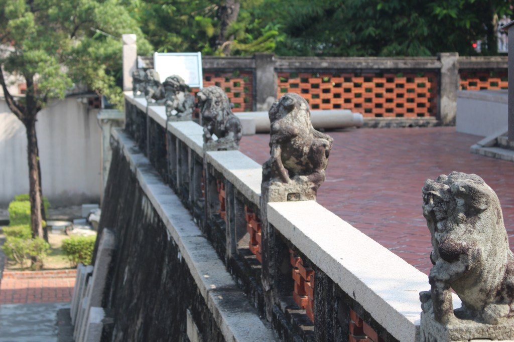 石欄石獅,由12隻不同表情獅子排列出來的護欄,雕造時間為清朝光緒年間,獅子的表情頗具氣勢,可見當時的雕工水準之高。