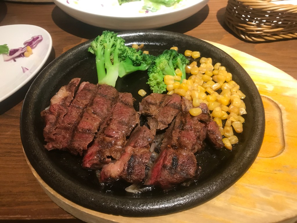 主餐牛排,因為是兩個大男人,所以我們只點了牛排,肉質不錯,吃起來不是便宜的牛肉,量的話,有些許的少,建議食量大的人另外加點其他的。