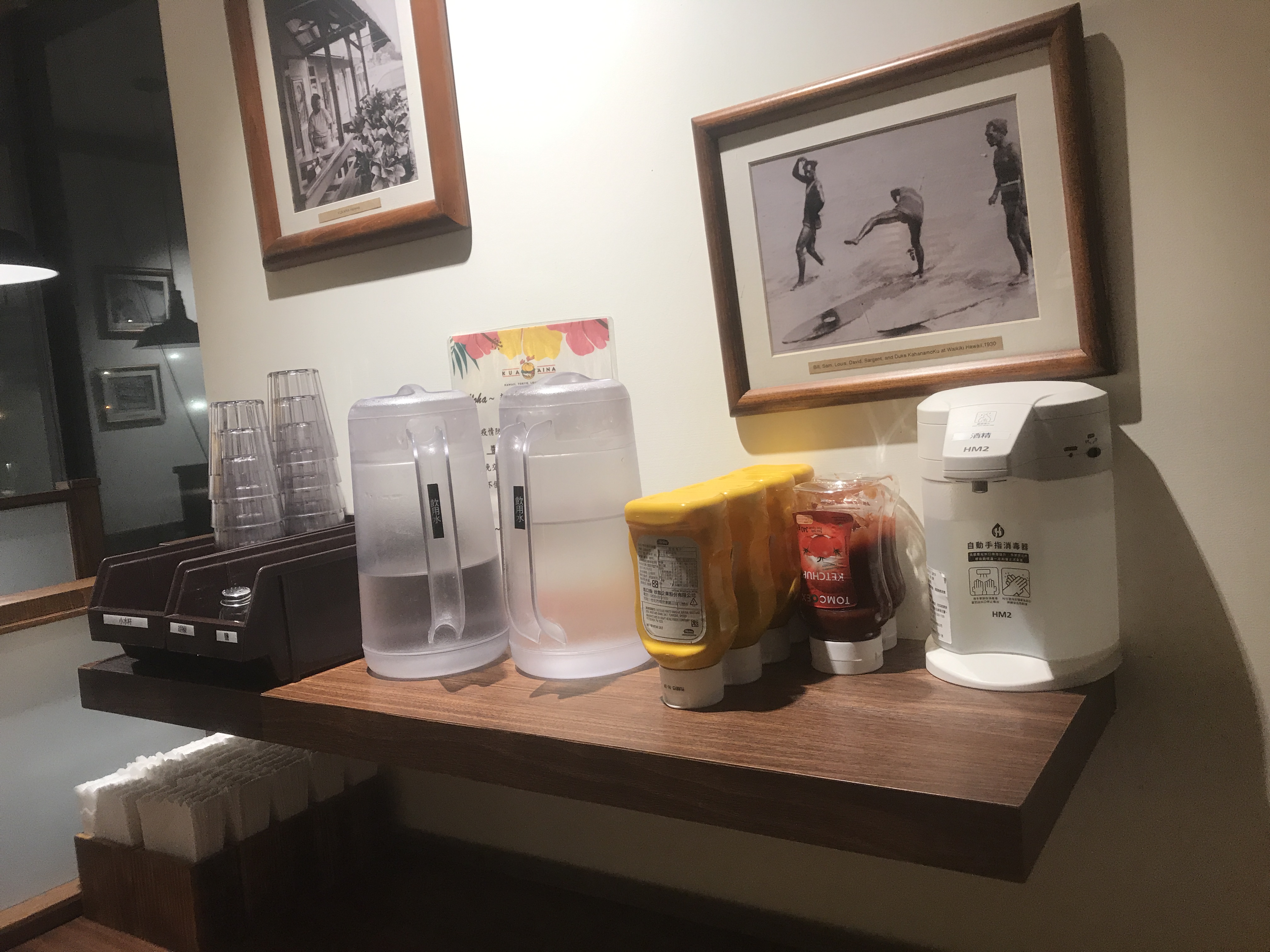 等待的時間四處晃了一下,很簡約的擺設,餐具、飲水跟醬料採自助式的,醬料應該是國外進口的醬輛,平常沒什麼看過。