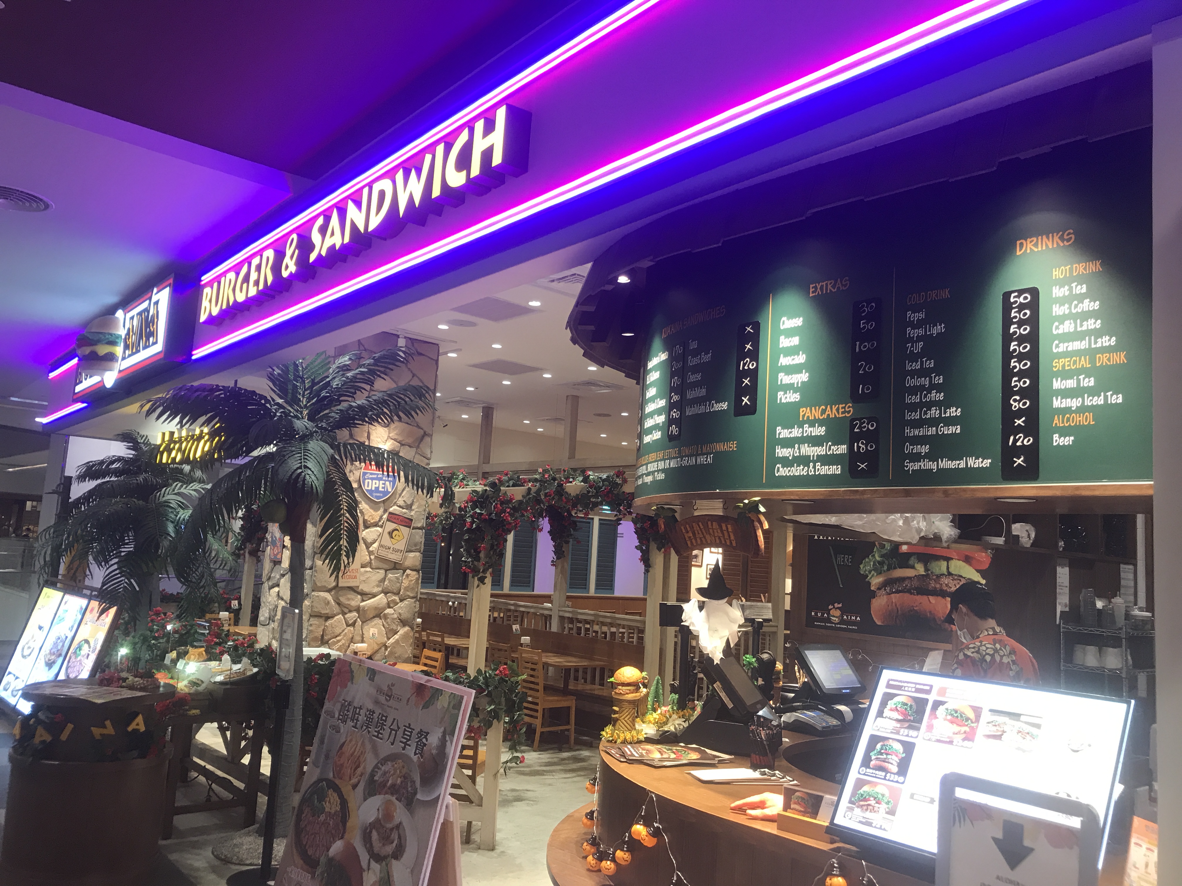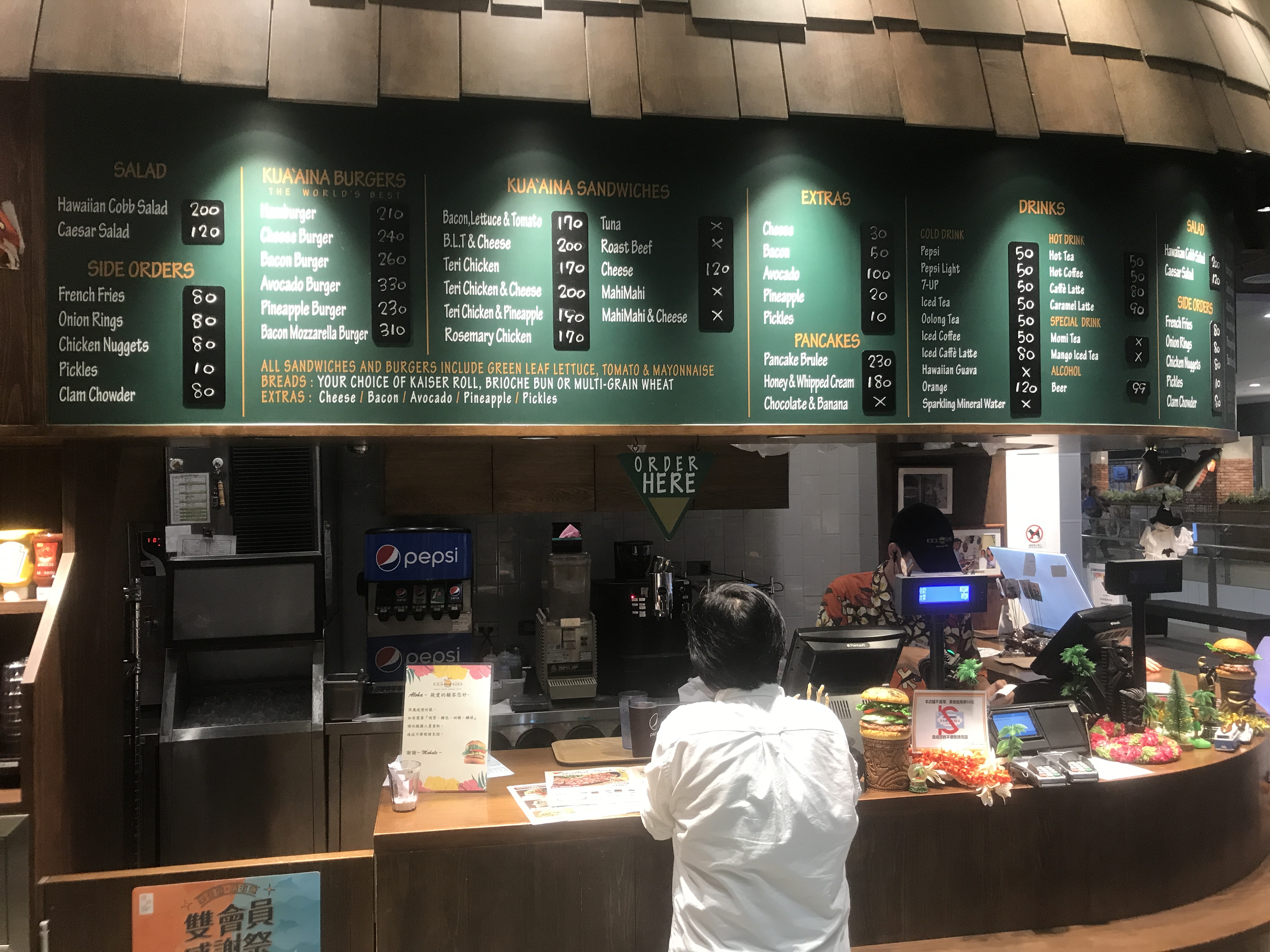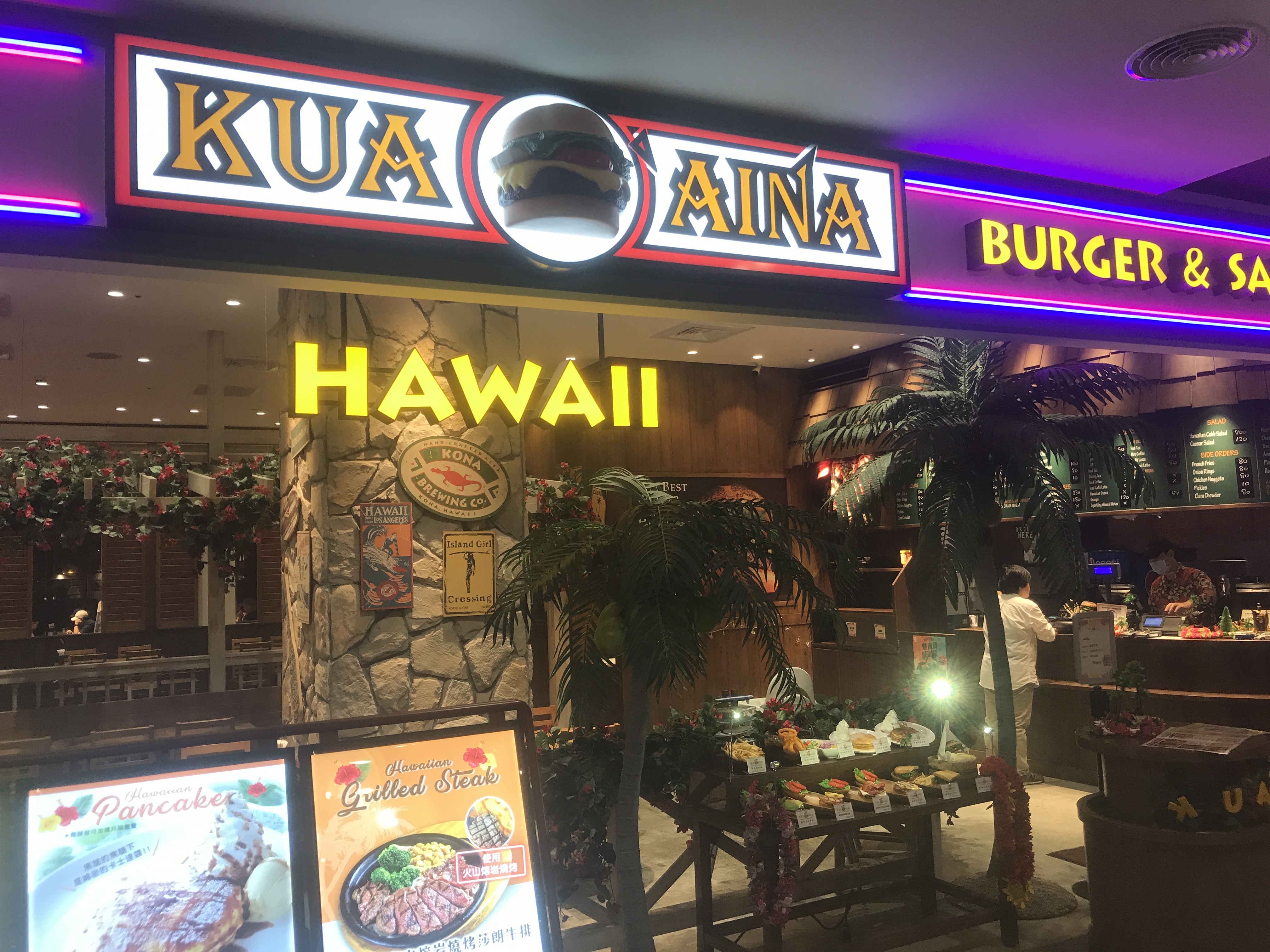 偶然的同事聚會,考量方便停車跟好吃於是相約在Mitsui Outlet Park台中港店,晃了一圈,就選了這間KUA AINA夏威夷漢堡。