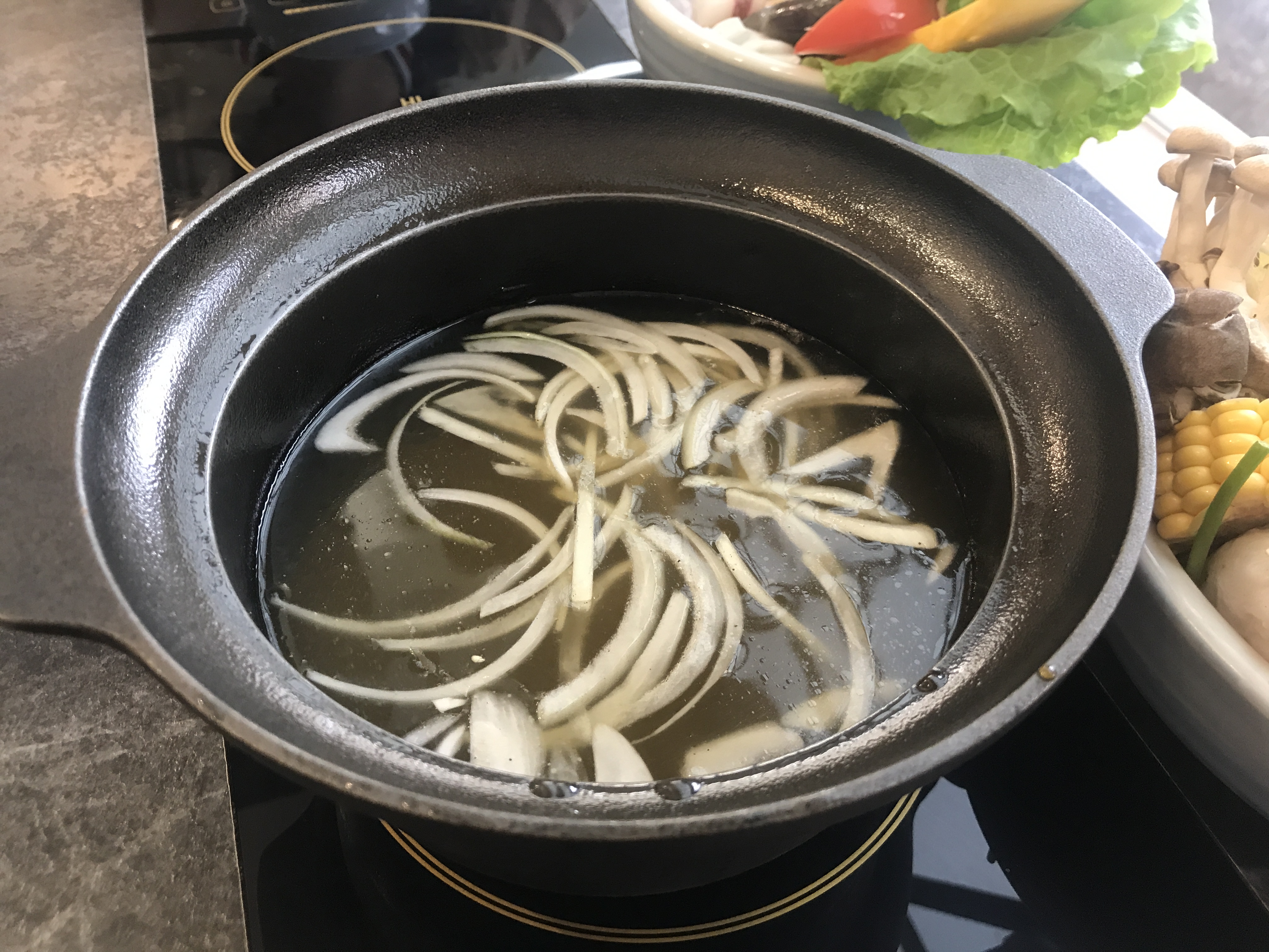 My Japanese style pot has a lot of onions in the soup, which tastes good.