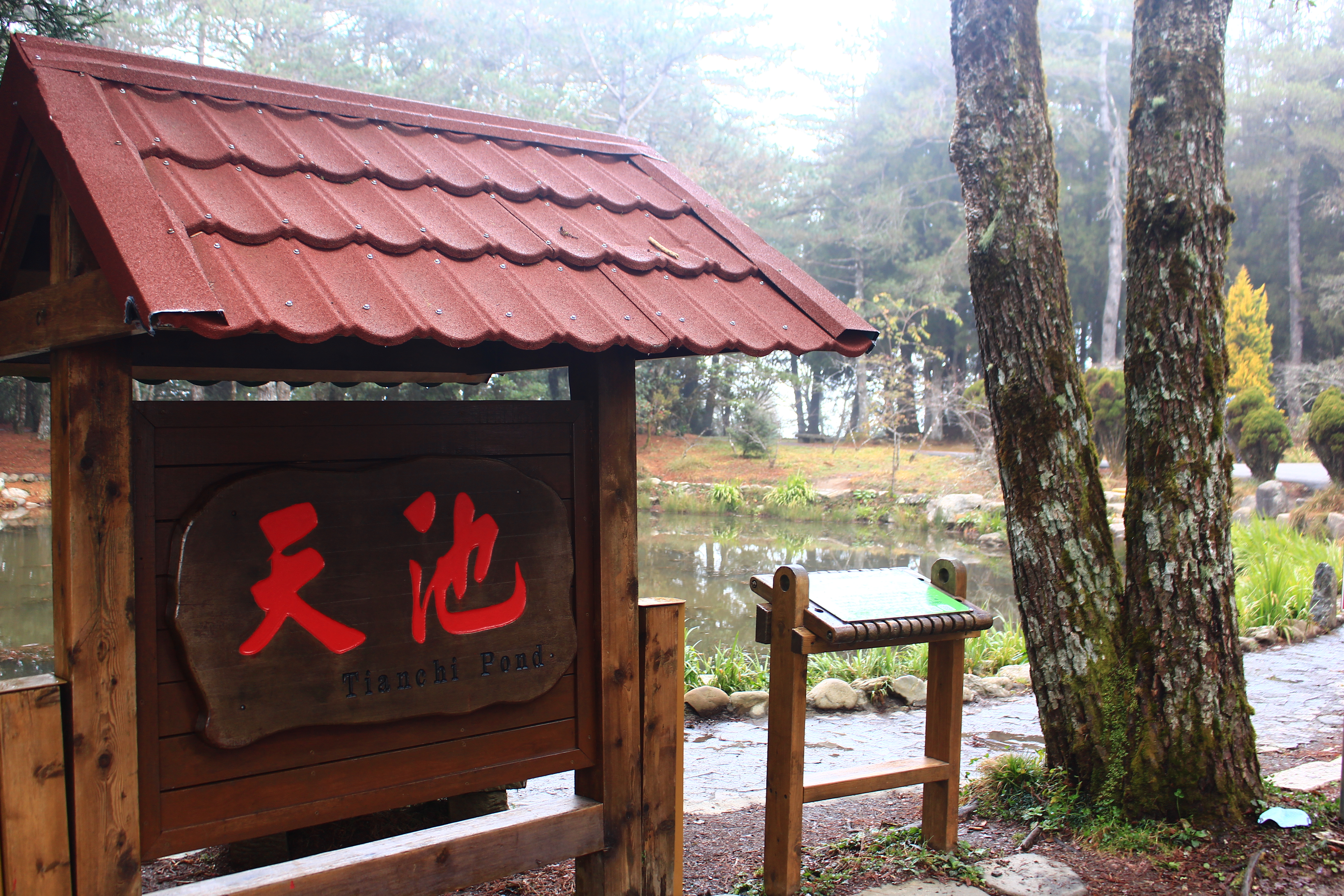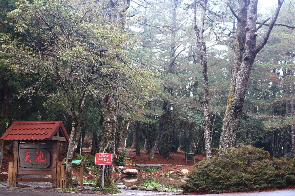 往福壽山農場的更高處,海拔2580公尺的地方有個『天池』,天池不知道是什麼原因,池水終年不竭,旁有兩層建築物「達觀亭」,是先總統蔣公早期的居住地。入園時請出示福壽山的發票,天池跟福壽山兩區的門票是共用的,並且能使用隔夜。