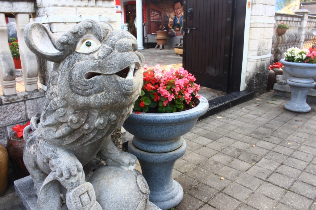 The cute stone lion, with big ears, is not the same as other lions. This one is not majestic at all, and it is a little funny.