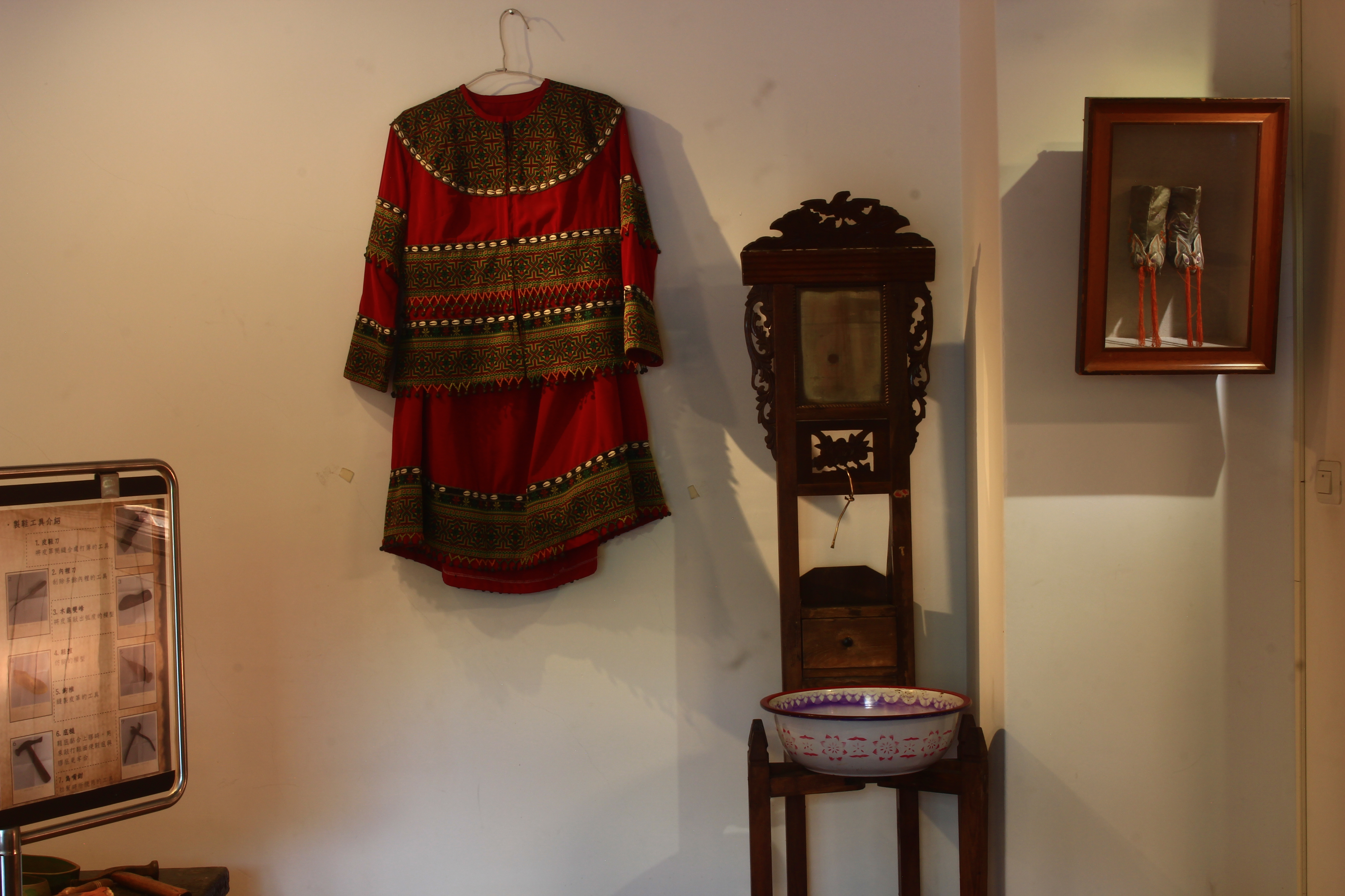 寢室區,沒彈簧床,都是木製、竹編的,睡起來應該很硬。旁邊的肚兜,我一直很好奇,為什麼古時候會發明肚兜,那麼小片真的有功能嗎?