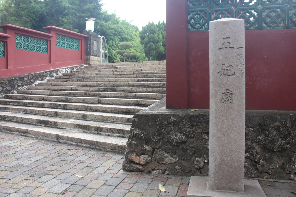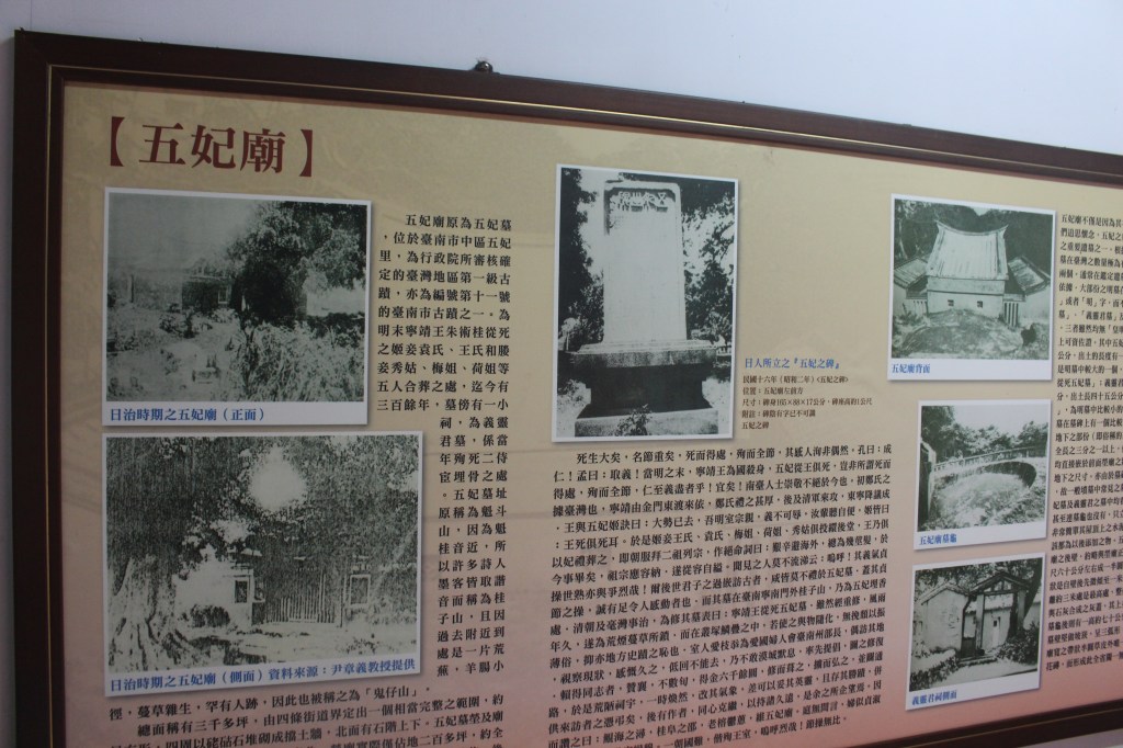 在廟旁,擺著有日治時期臺南州知事喜多孝治手撰「五妃之碑」。讀完碑文後,可可有種感嘆,當下做的決定,影響的可能是長達三百多年後的歷史。