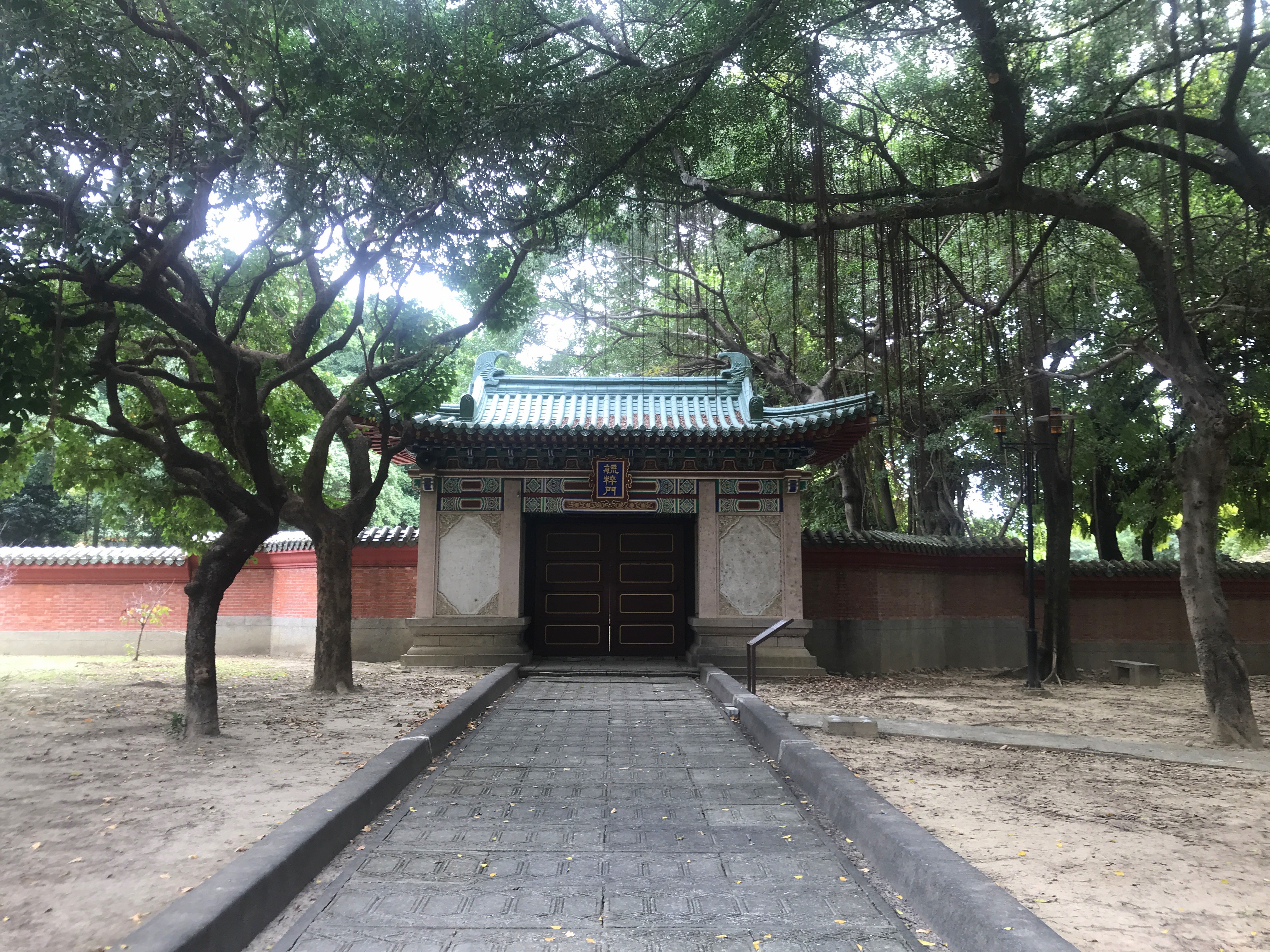 通過半月池通往大成門前的甬ㄩㄥˇ道,甬道是指有有頂棚的通道,雖然說這裡的甬道沒有頂棚,但隨著歲月的累積,周遭的老樹似乎已自動的幫廊道搭出天然的頂棚。