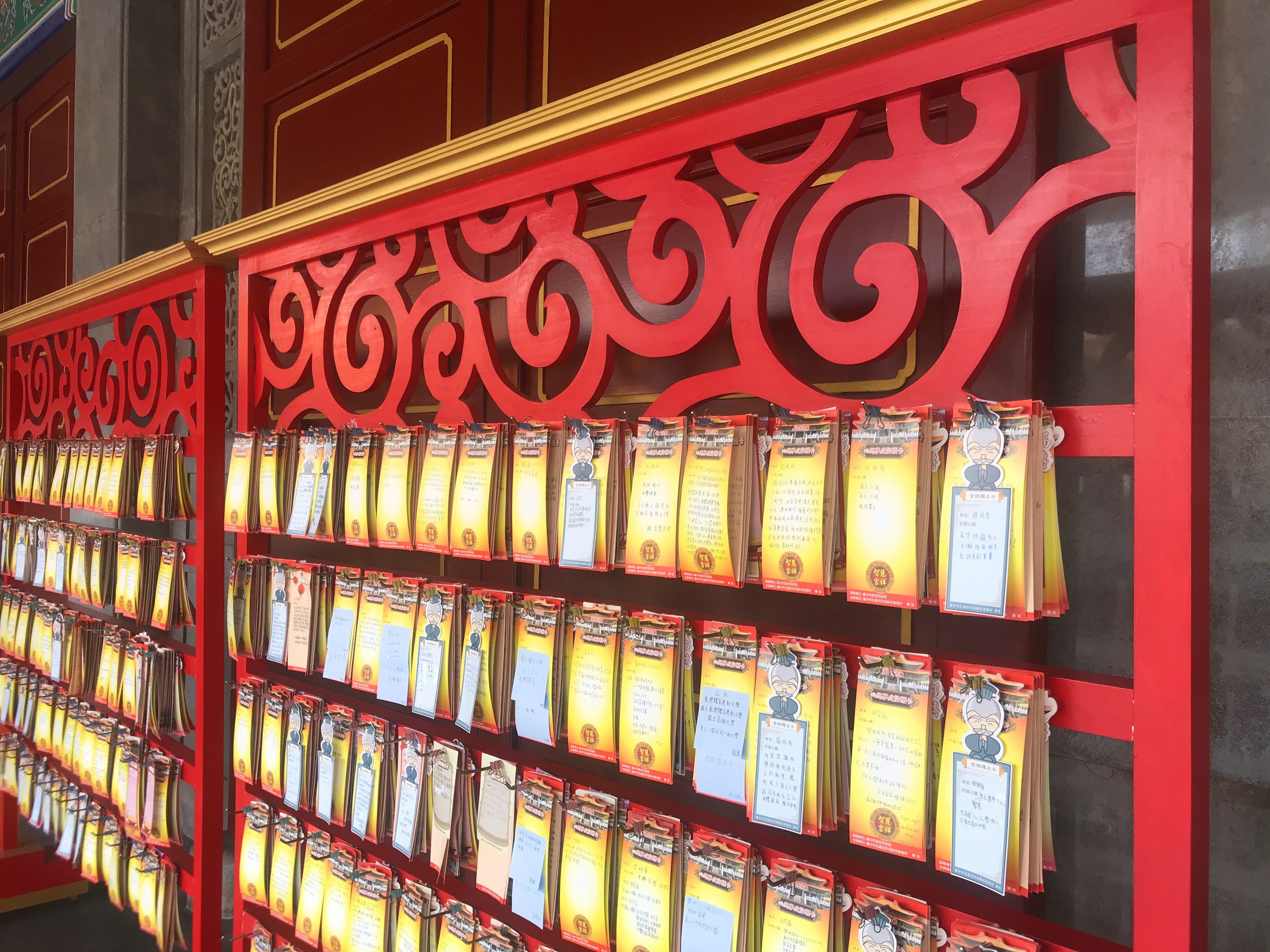 滿滿的祈願卡,是許多學子的期望。由於隔壁就是台中一中,許多家長認為距離更近應該更能受到保佑,口耳相傳下,成了考前必拜的名廟。END