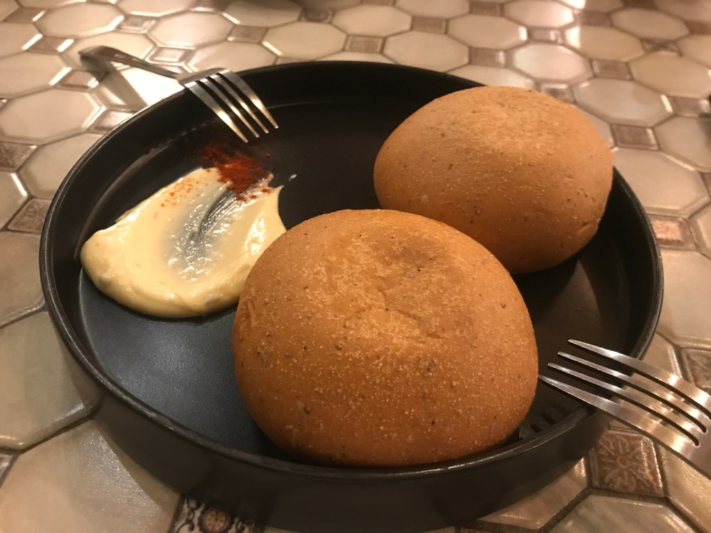 First came the bread. The hot bread was a bit dry and rough, but it was served with garlic sauce. Become a smooth entrance.