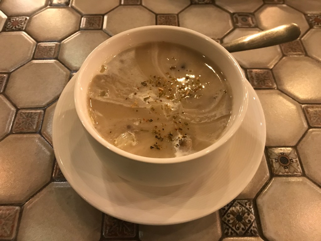 濃湯是蘑菇口味,包含了一些培根肉,可可幾次經驗,在一中街喝到的濃湯水準都相當好。