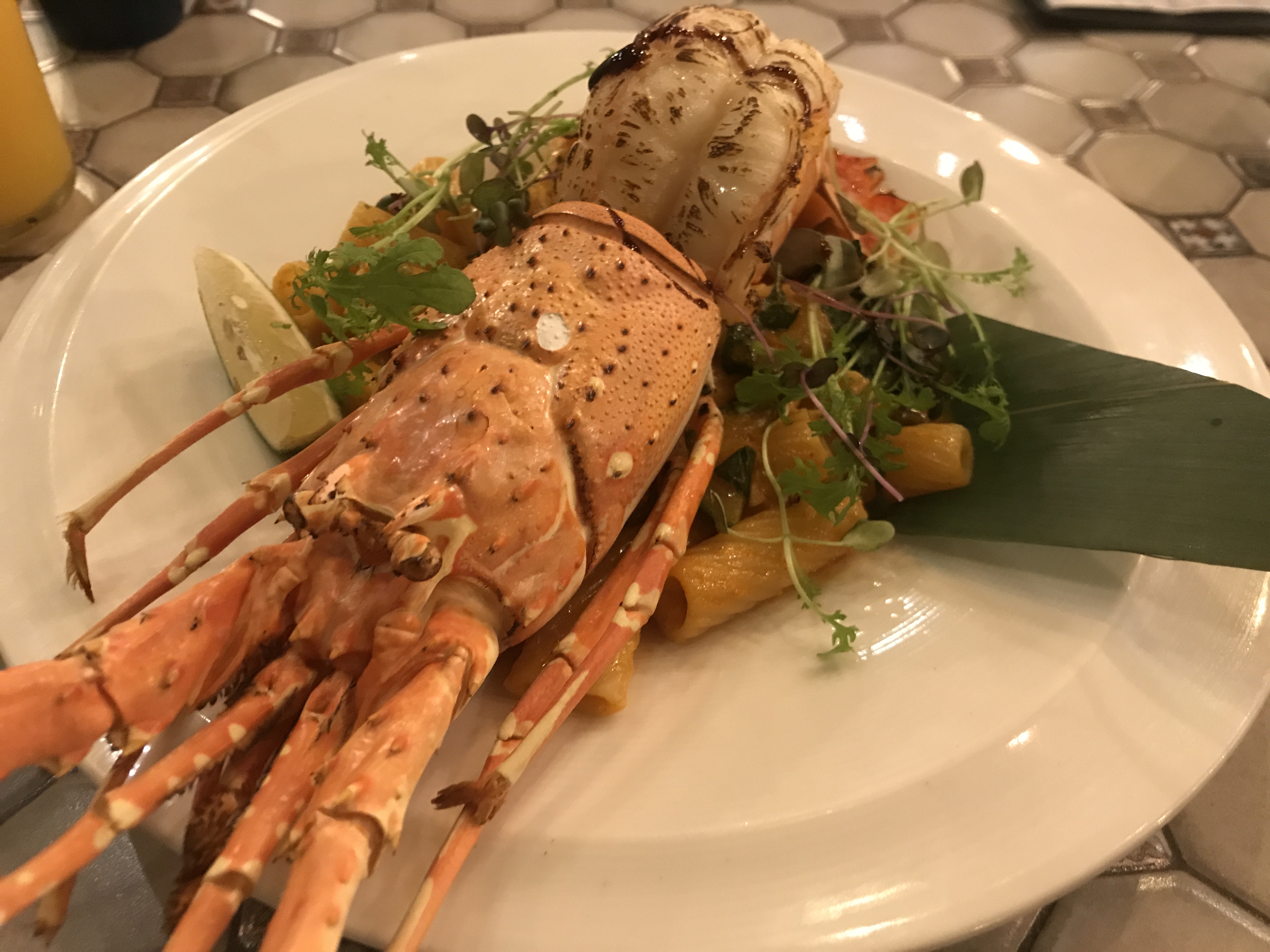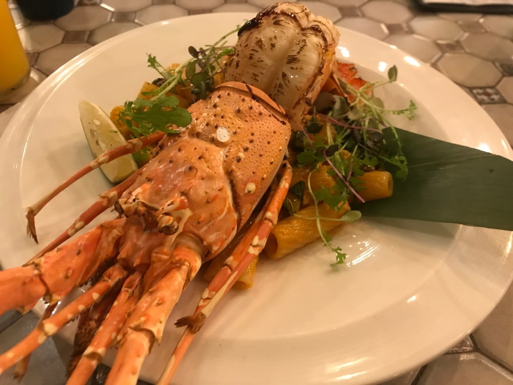 可可最期待的,龍蝦義大利麵。整隻龍蝦不加調味料單純使用火烤,肉質鮮美可口。筆管麵也相當Q彈,十分美味。