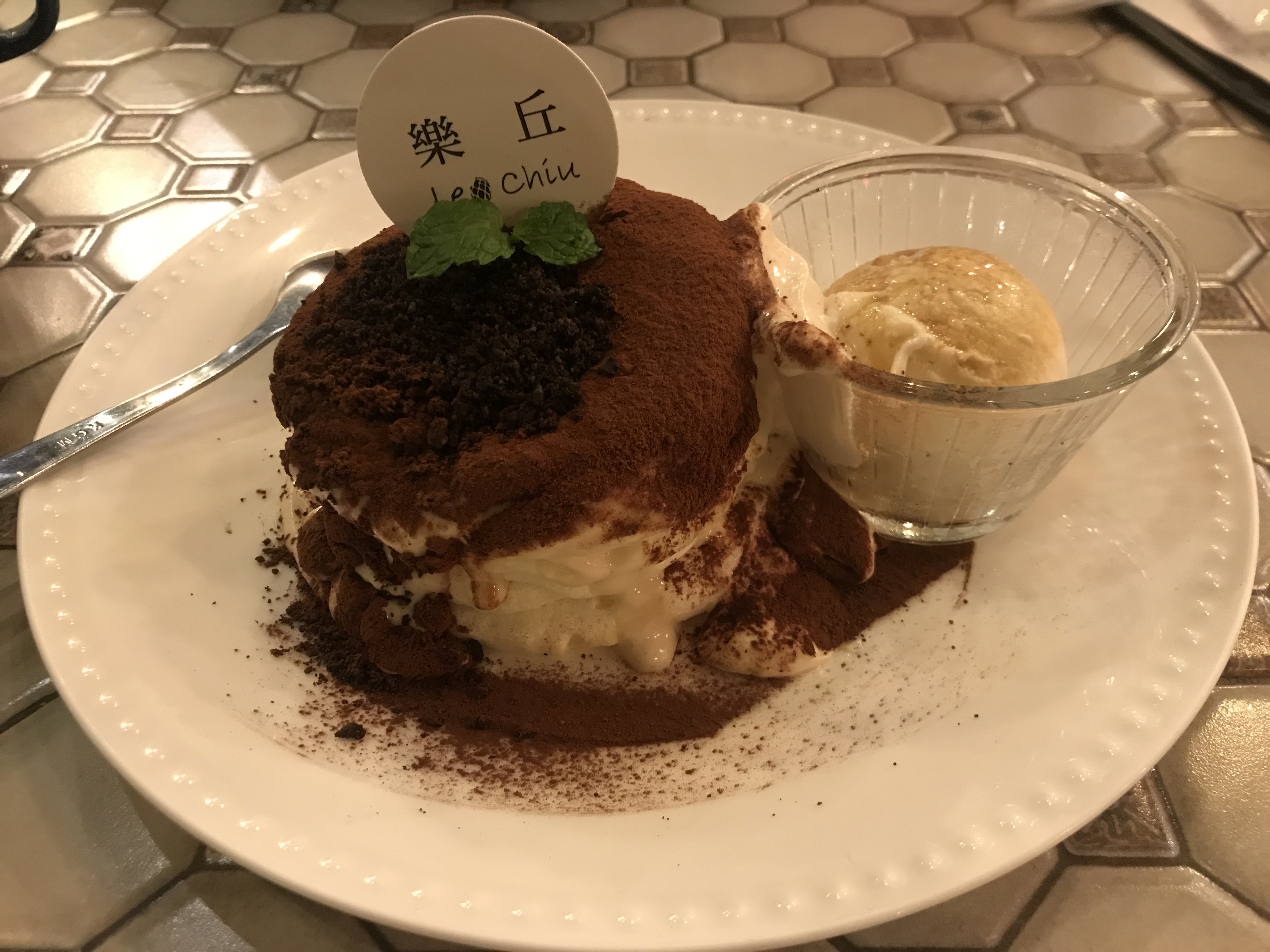 重頭戲舒芙蕾鬆餅,可可看了周遭,很多女性是衝著這個鬆餅而來,軟Q軟Q的鬆餅,淋上可可粉,搭配著冰淇淋。多層次的口味,難怪這麼吸引人,分量不小,適合兩個人一起吃。