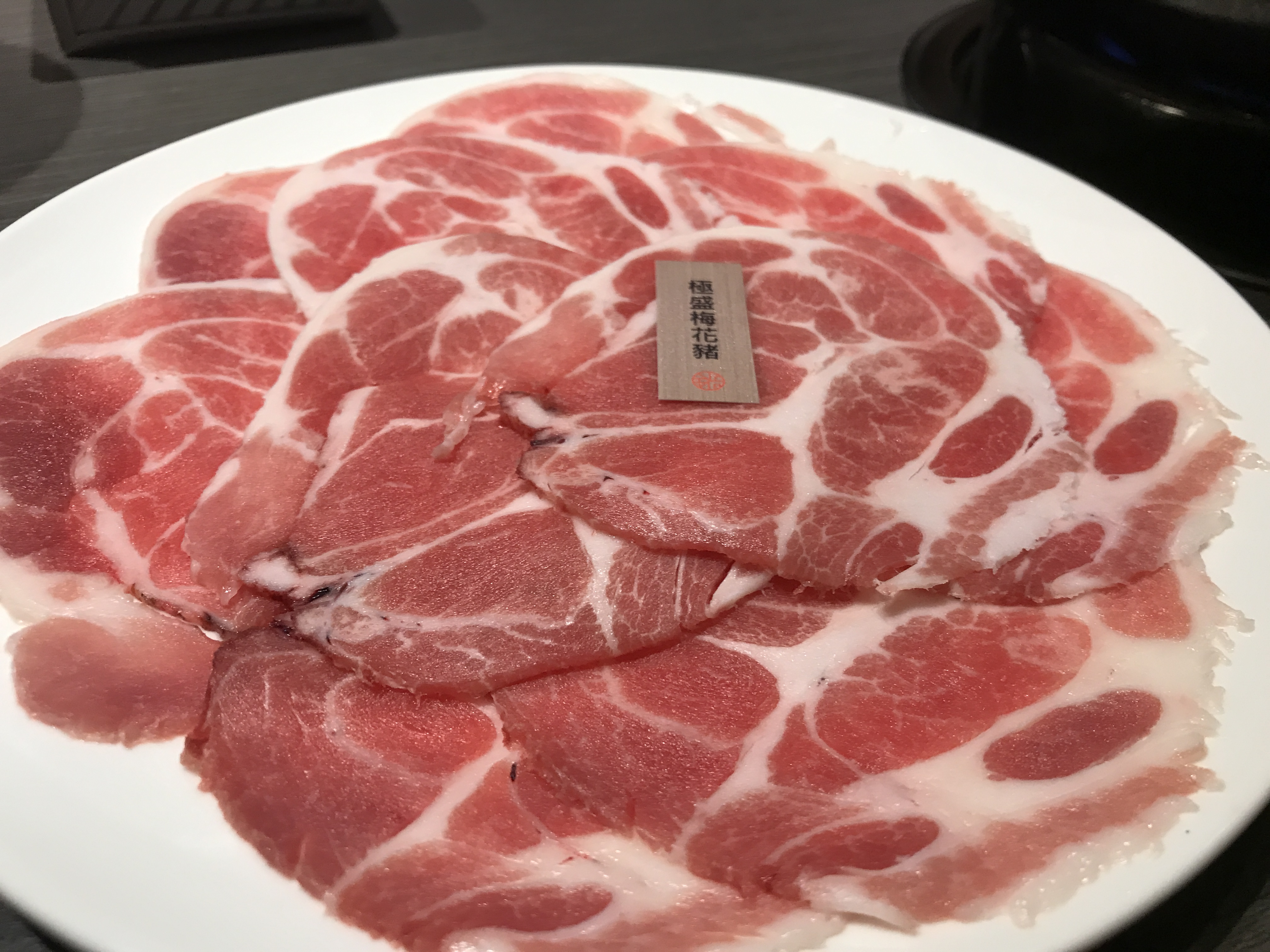 主菜之一,梅花豬肉盤,台灣嚴選溫體豬肉。雖然肉片是平片擺放,但分量相當足夠。