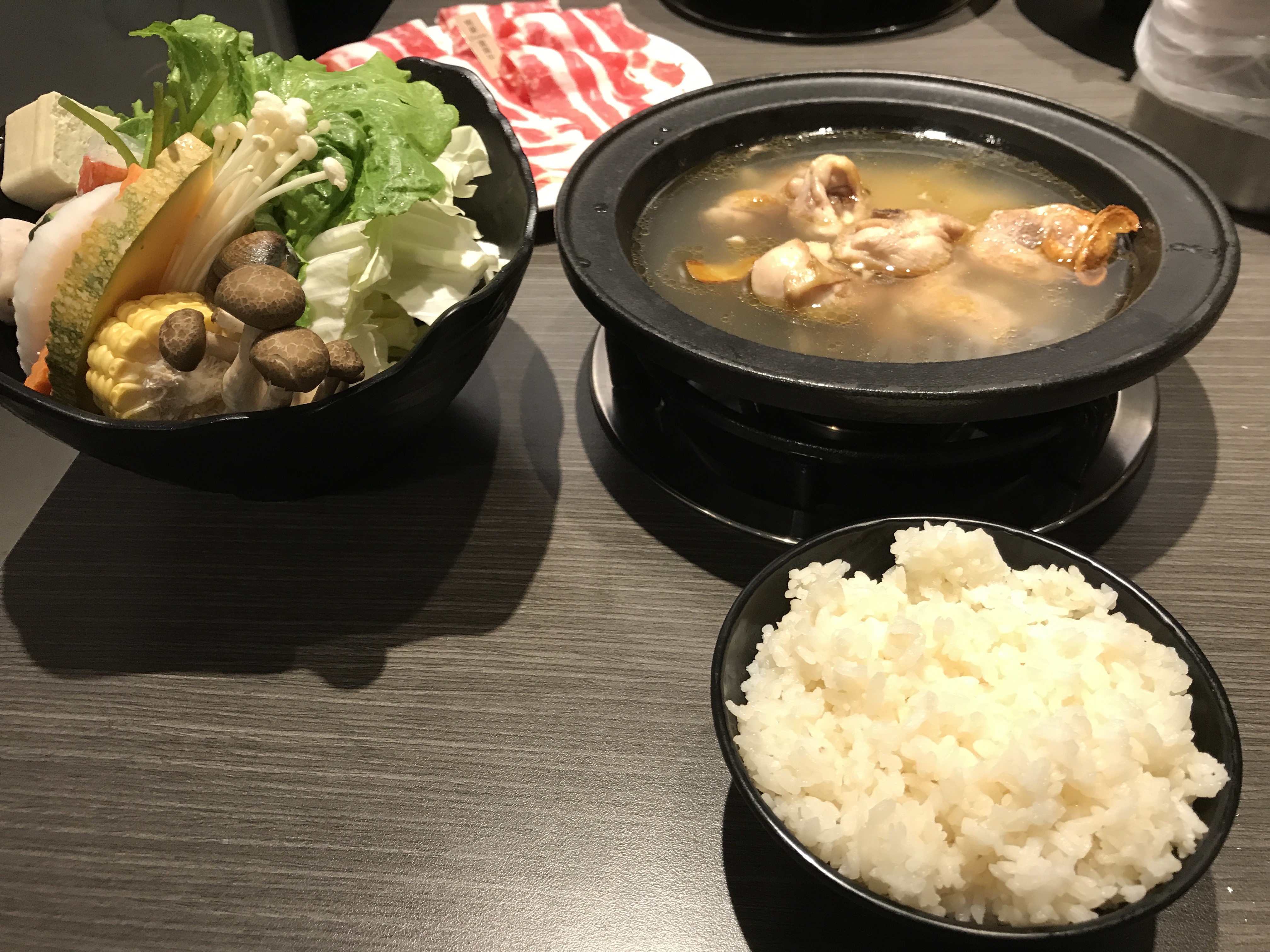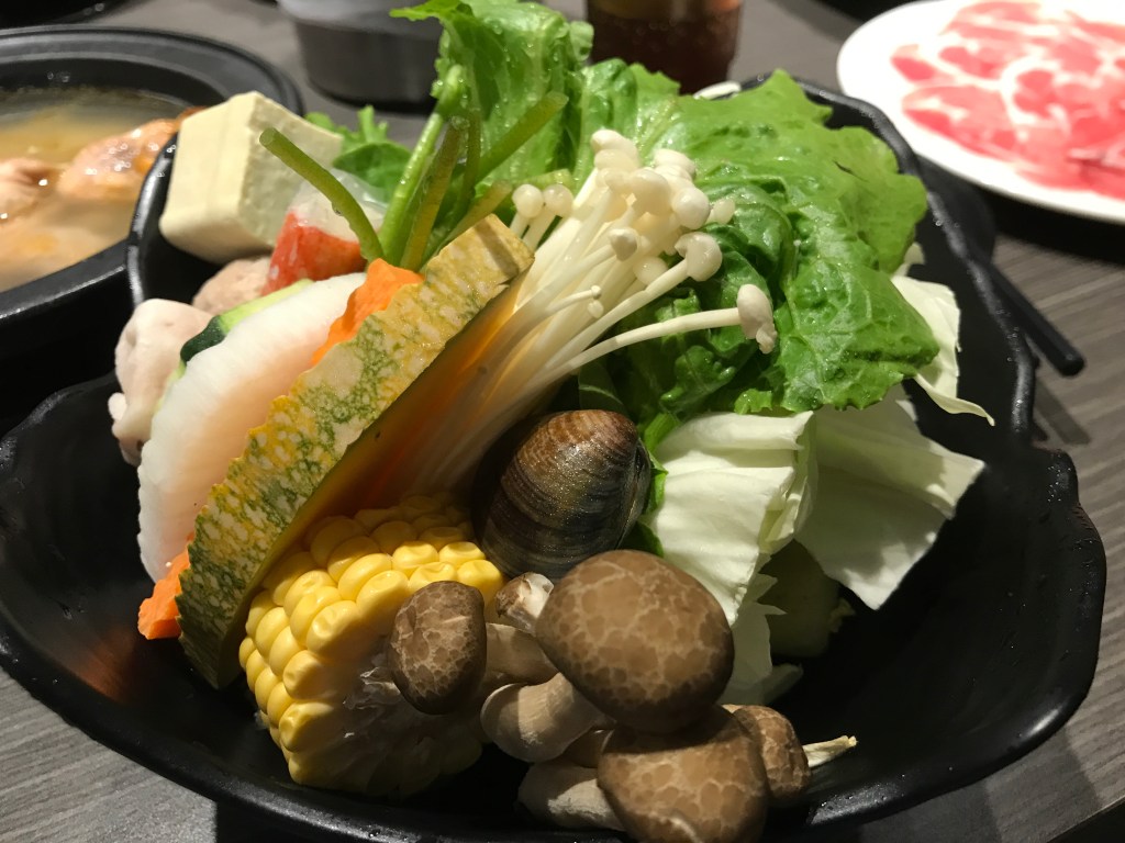 回來時菜盤已擺在桌上,大部分是新鮮的食材。沒有火鍋料濫芋充數。在食材方面,可可給不錯的評價。