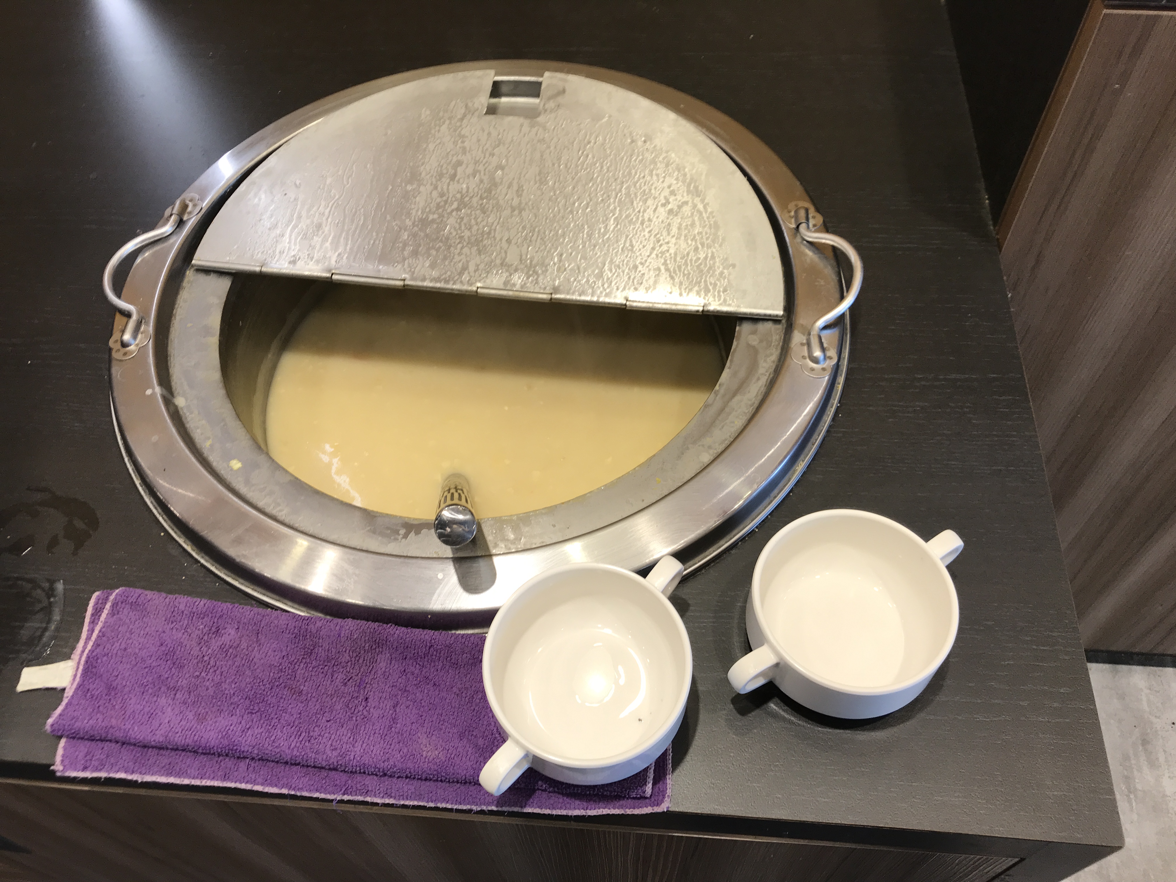 The unlimited supply of corn soup, the taste is quite strong. Because it was delicious, coco drank two bowls .