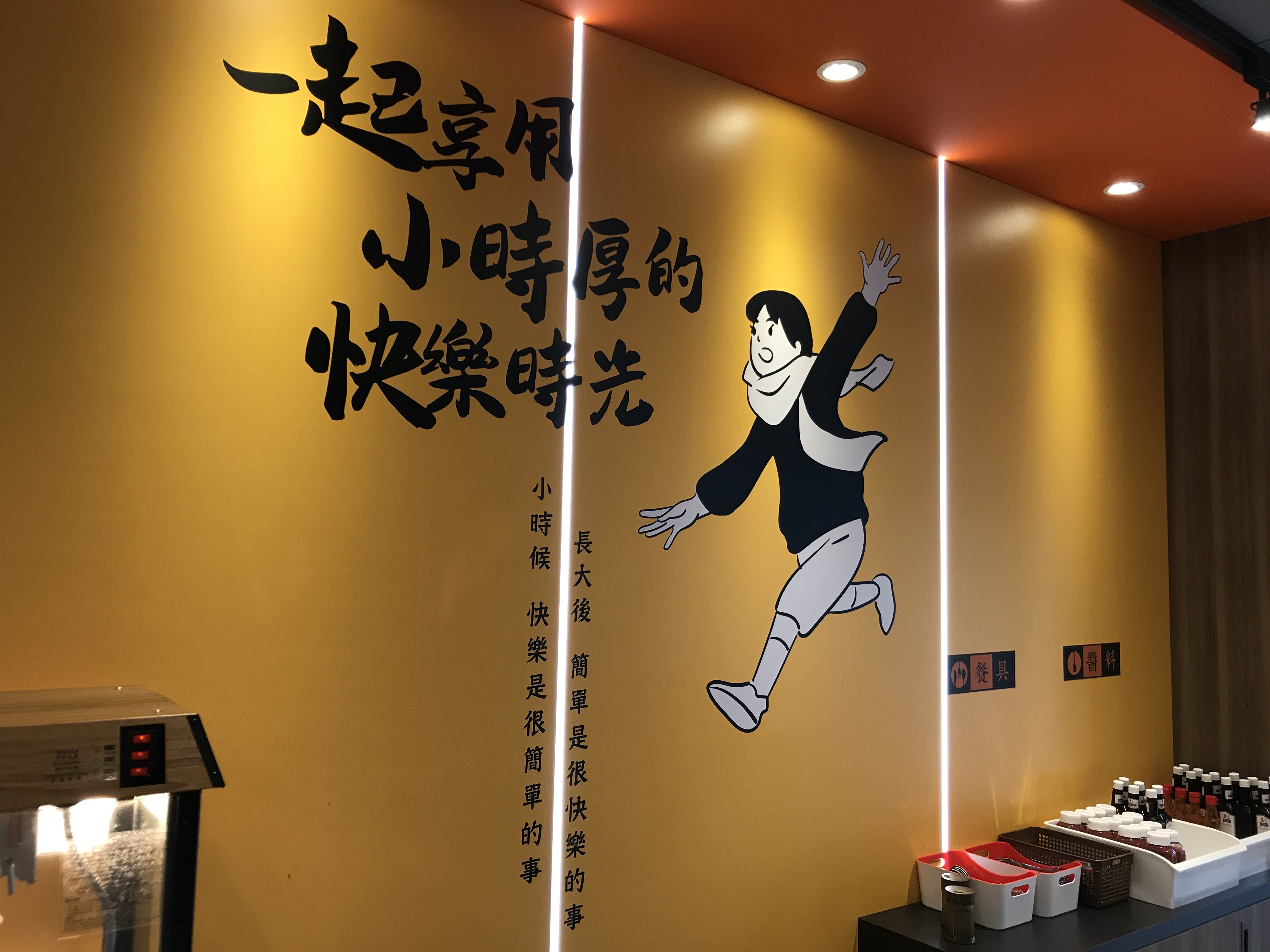 吃飽喝足,離開前拍一下店家的擺設,「小時候,快樂是很簡單的事。長大後,簡單是很快樂的事。」或許,也正訴說著這次用餐的心情,簡簡單單。