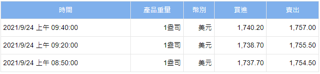 心癢癢的看了一下台灣的牌價,目前的買進價格1740.20美元,賣出價格1757美元,台灣也已經開始反映下跌時的價格,並且有開始緩漲的跡象。