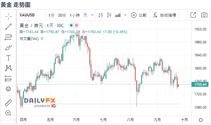 2021年9月23號黃金又跌了31美元,以1742.84美元收盤,今天主要是美國聯邦儲備委員會公布利率,沒有什麼大變動,還是維持在0.25%,但隨著購債縮減時間越來越接近,投資人還是反映了今天的下跌。