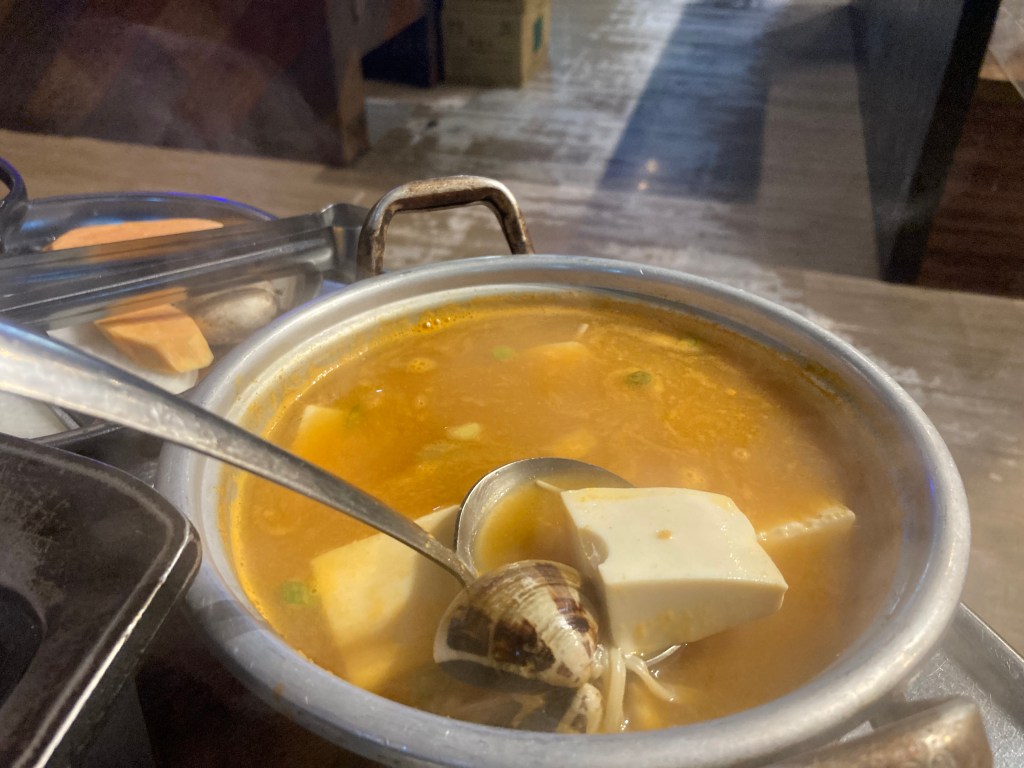 Korean Miso soup, using Korean soybean paste as the soup base, adding tofu, seafood, and vegetables. It is a representative dish of Korean civilians, and the taste is not bad.