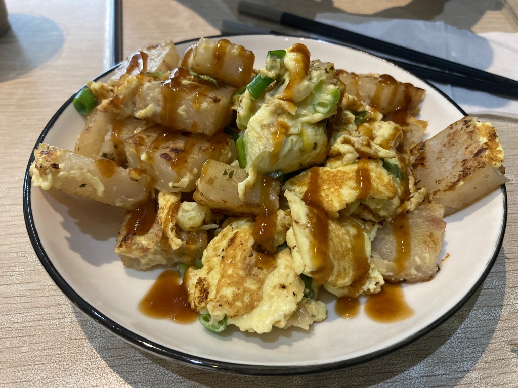 The radish cake is added with eggs, the radish cake is fried just right, and the scallion egg enhances the hidden sweetness of the radish cake, which is quite delicious.
