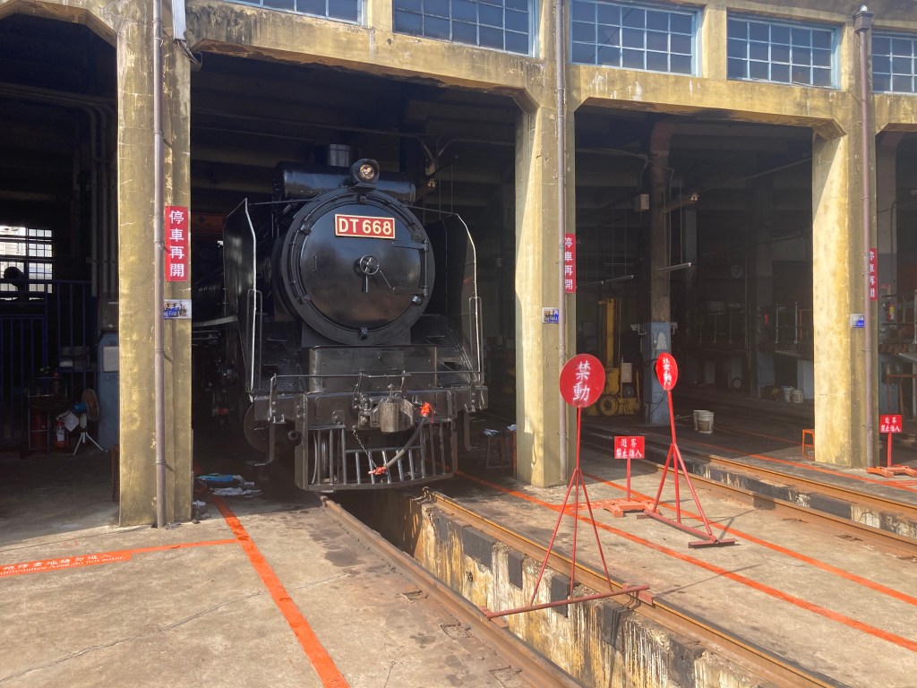 In addition to modern trains, there are also several early steam trains parked in the garage. These old trains have witnessed the history of Taiwan’s railways.