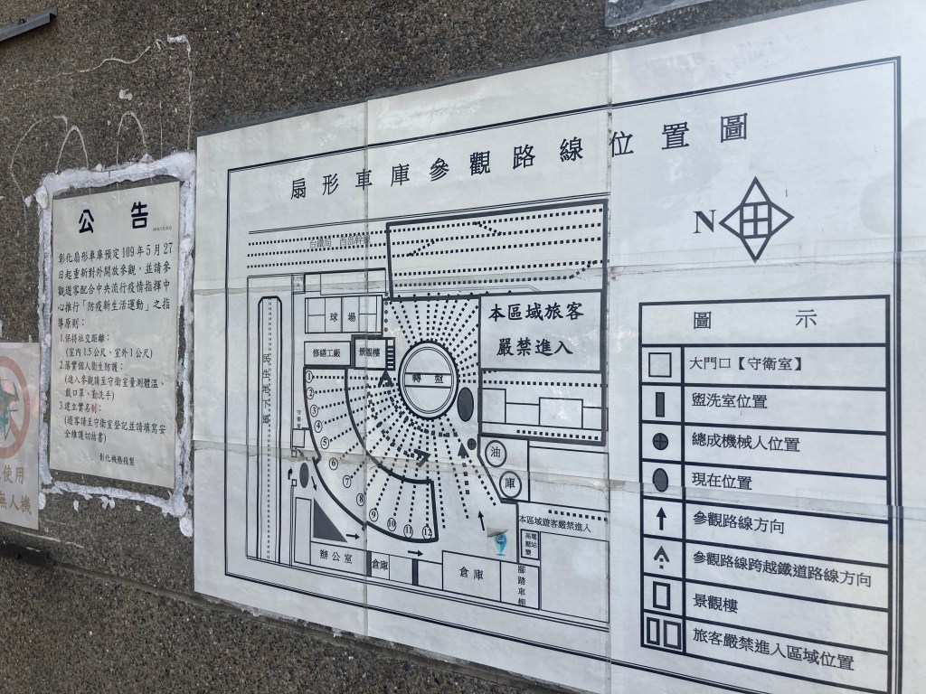 進入廠區內,你可以跟著地上指標走,約5分鐘就能到達扇形車庫。