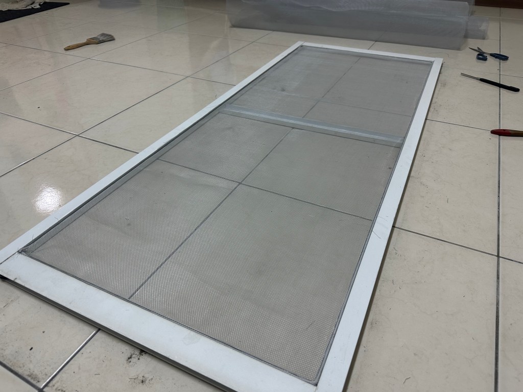 紗網的安裝,理想狀態是兩個人。一個人施工也是可以,不過拉直較為麻煩。