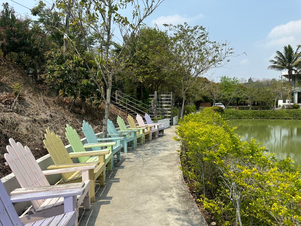 沿途有許多相當好拍的景色,像一整排不同顏色的座椅,可以讓遊客坐著休息,順便欣賞周邊的景色。