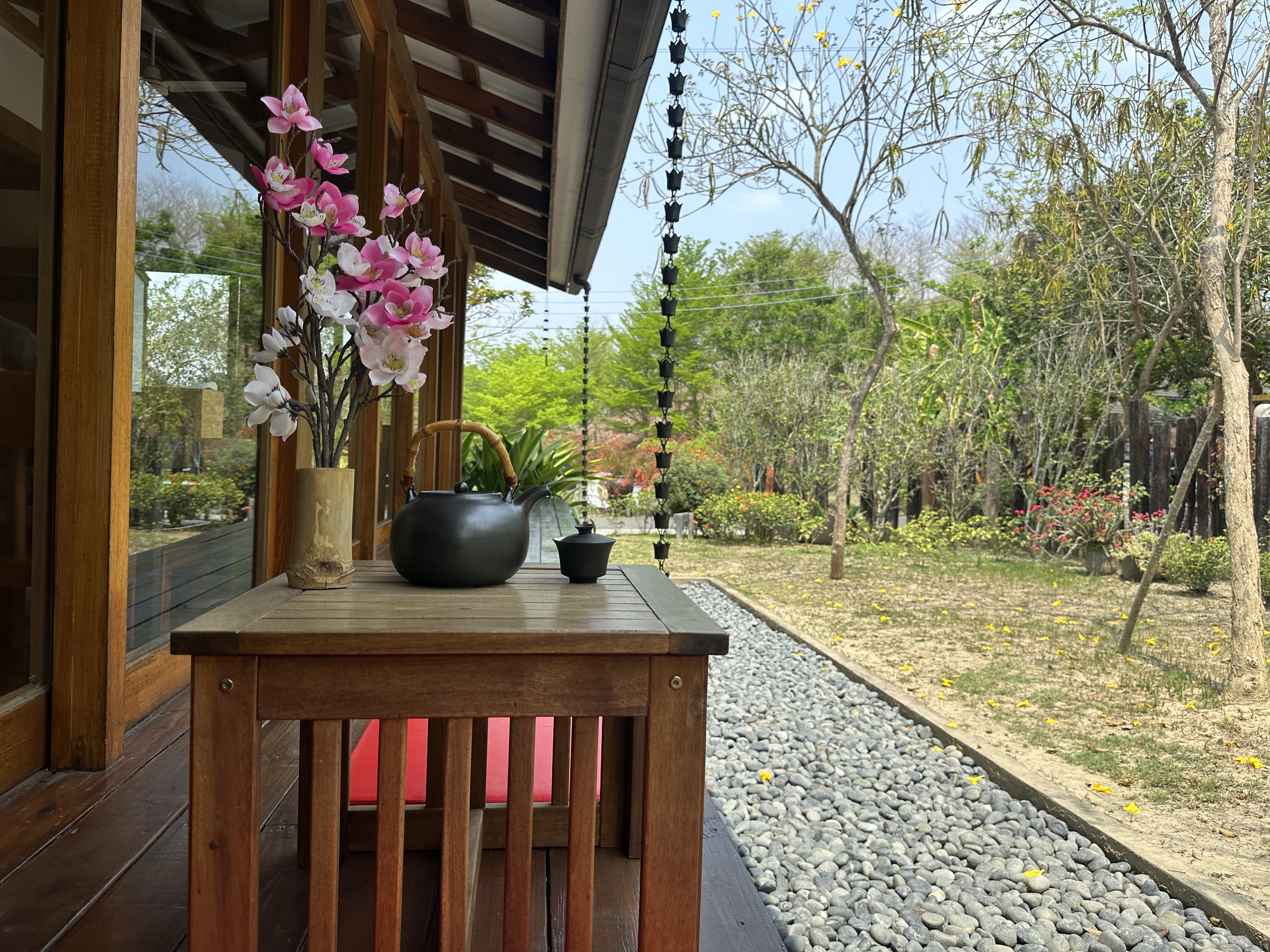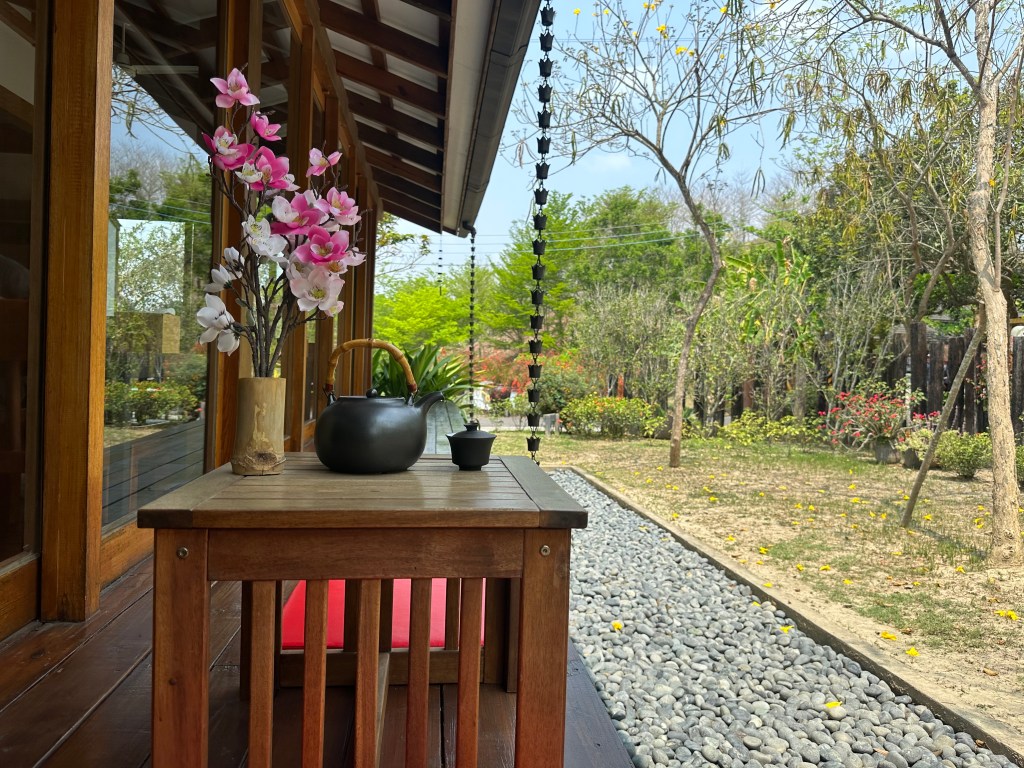 矮桌、茶、花,很簡單的東西,卻結合出最美的一幅景色。