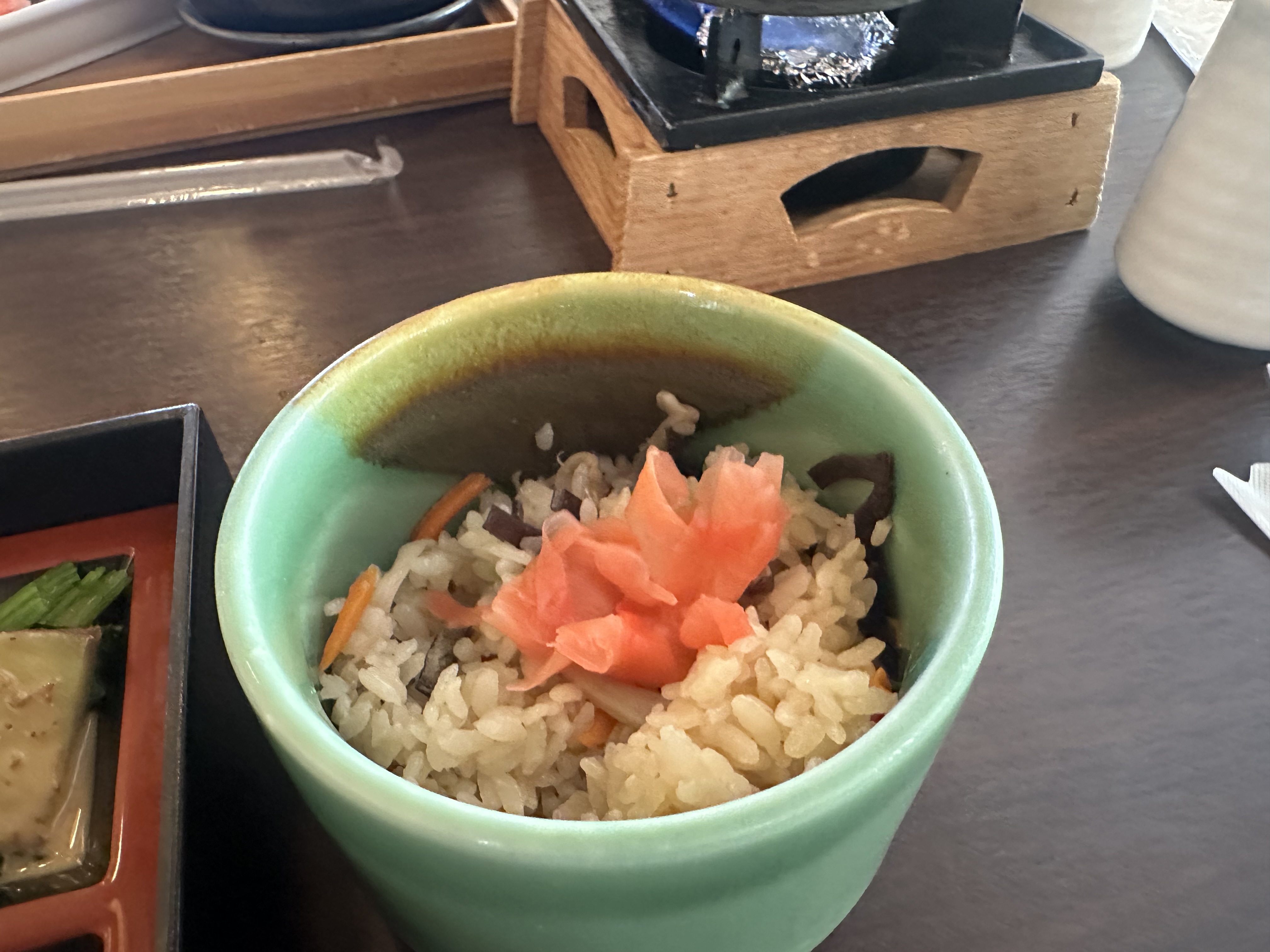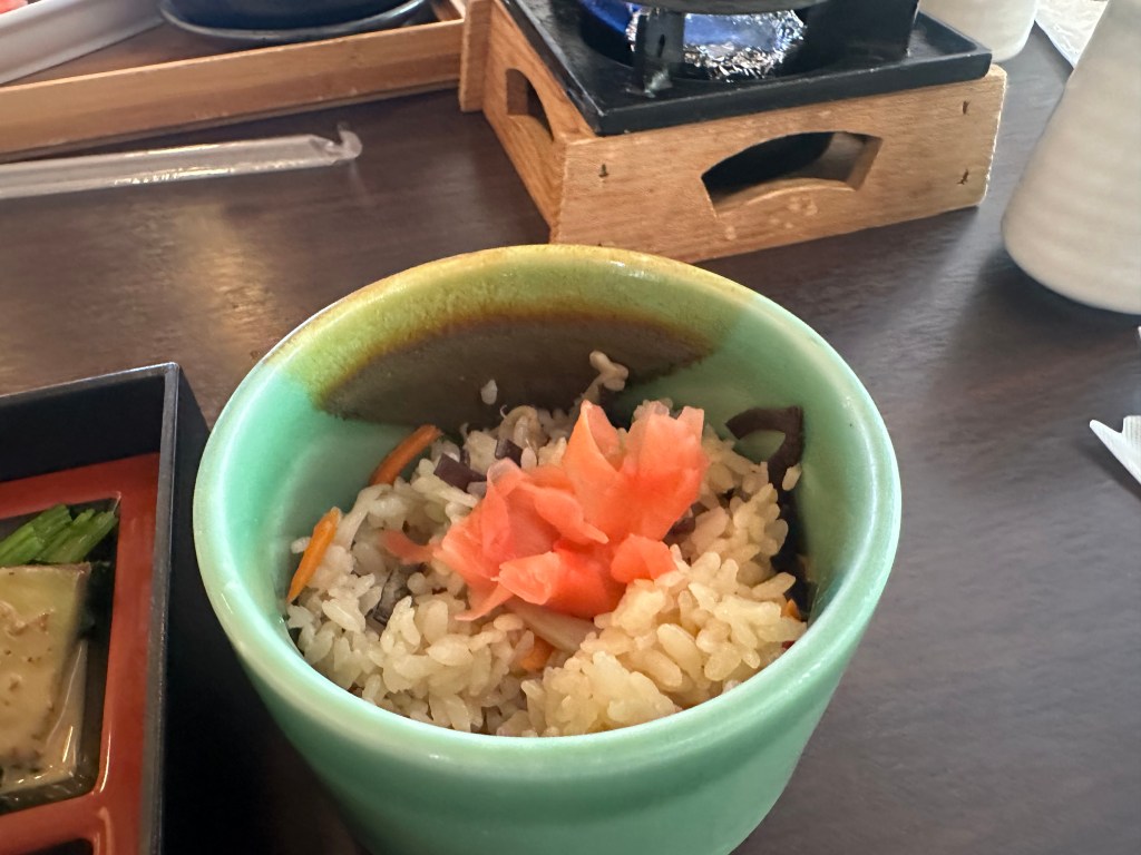 懷石料理即便只是一碗蒸飯,擺設也是美美的,讓人感覺十分可口。