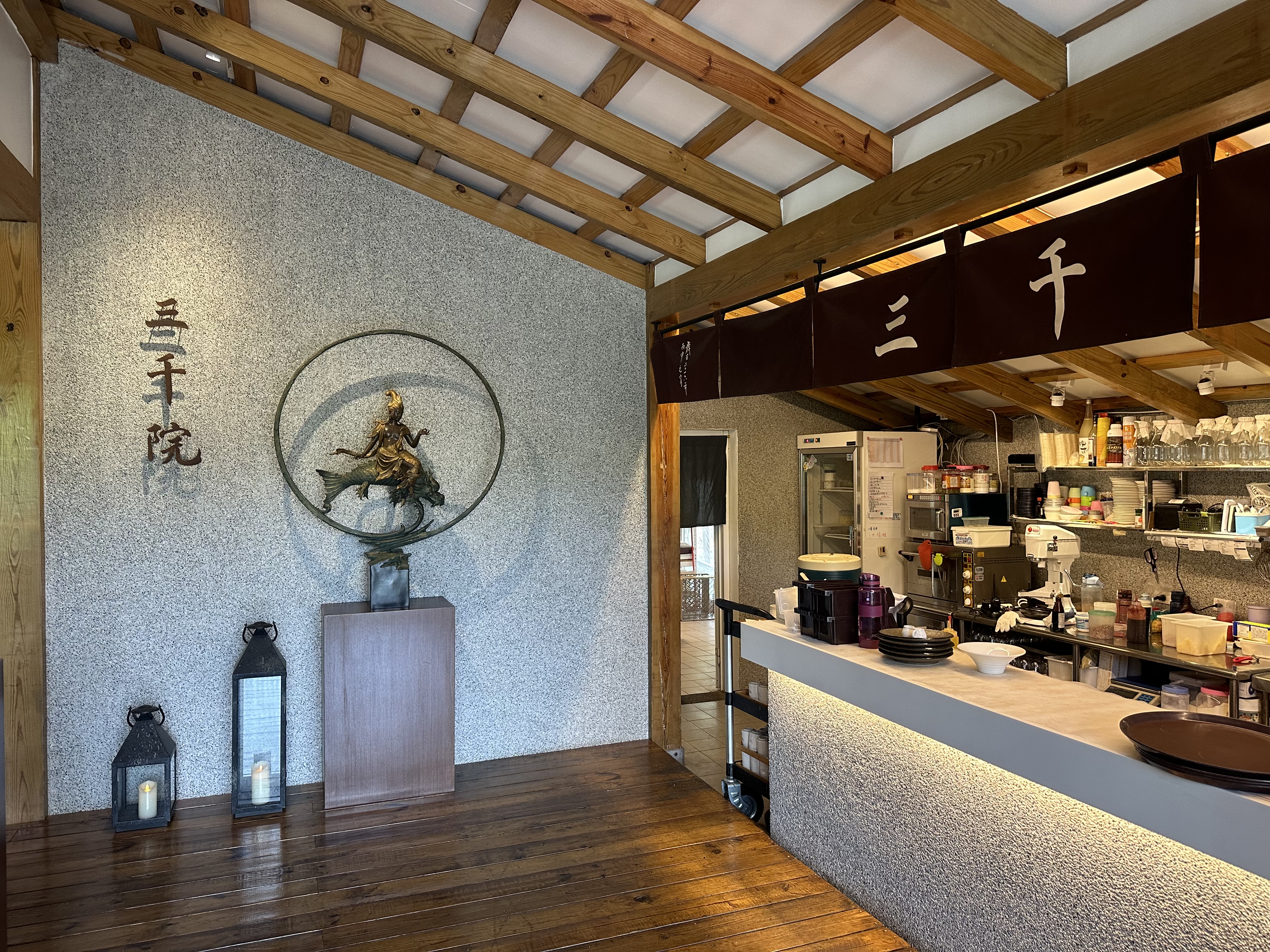 餐廳的內部相當得乾淨,房屋的構造相當的日式,除此之外,藝術品的擺設隱約還多了一份莊重與豪華。