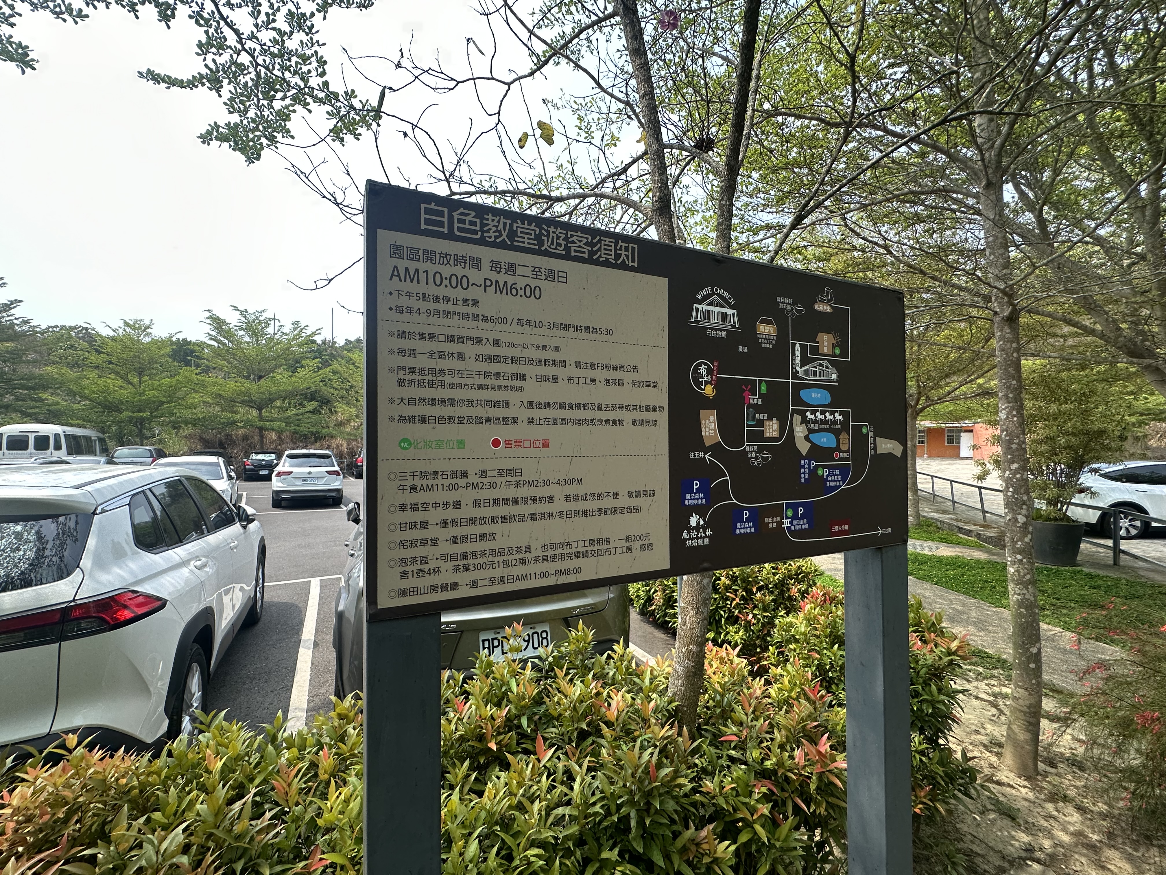 進入白色教堂園區是需要購買門票的,門票一個人150元,殘障者與120公分以下的小孩可以免費入場,在園區內消費每張門票可以折抵100元消費。