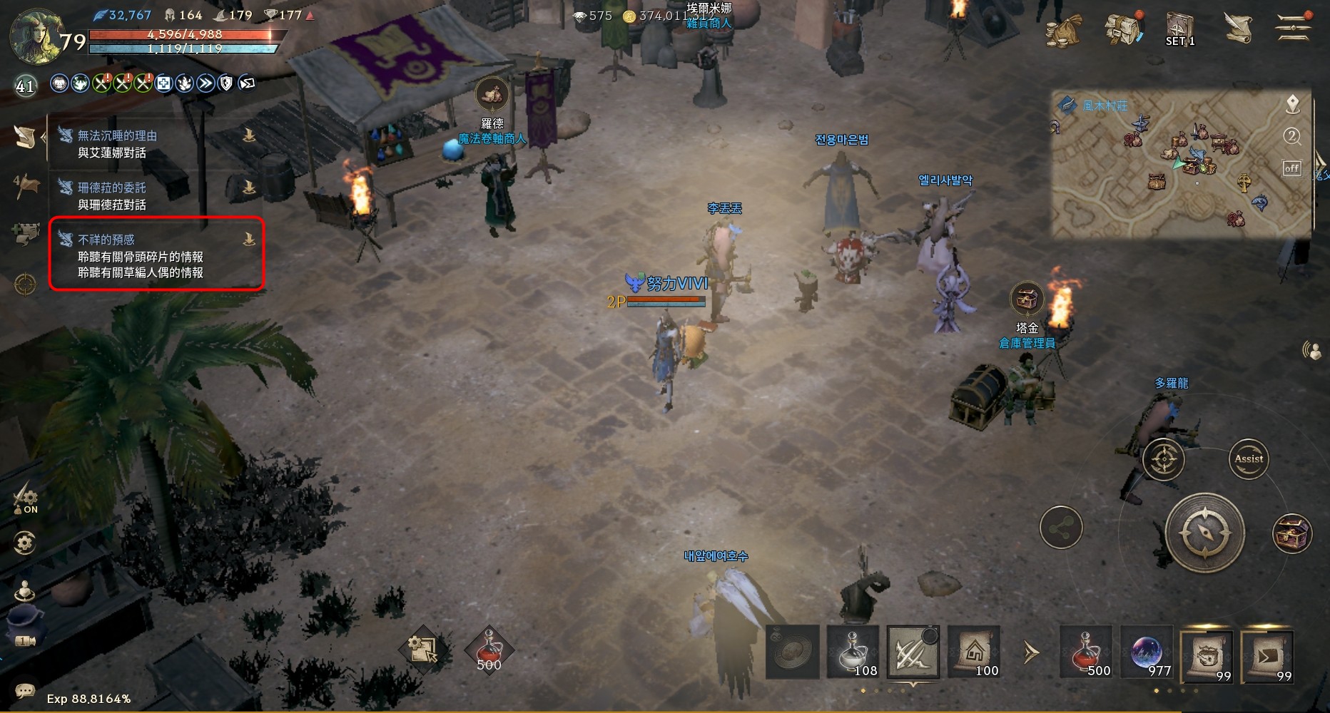 因為遊戲腳色很多,所以常常在解遊戲的任務。在天堂W中,有些任務是沒有自動導引的。例如這個任務「不祥的預感」。