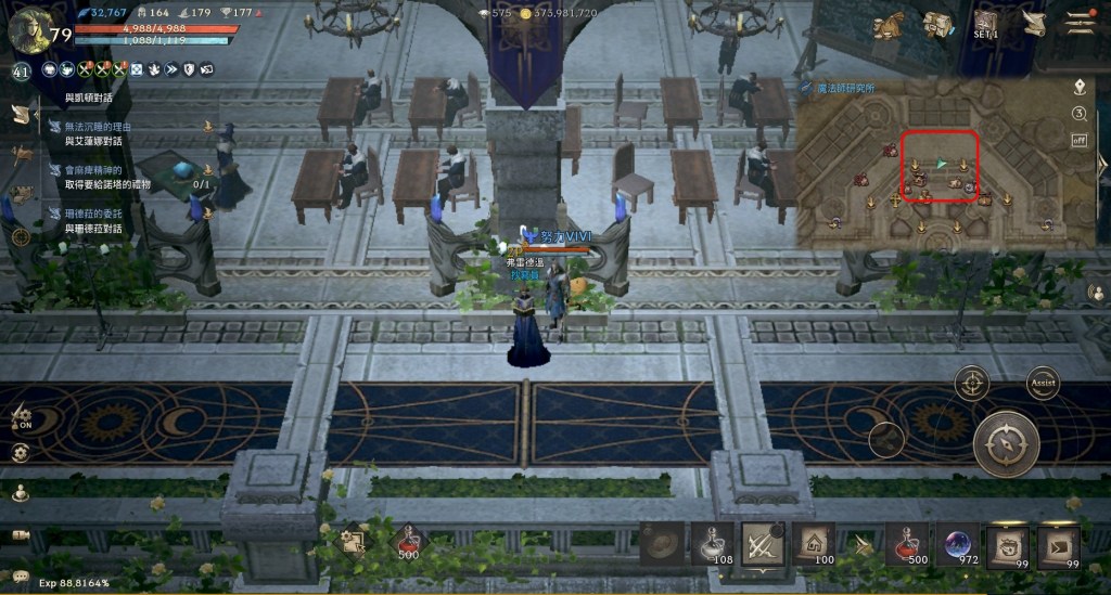拿好兩個情報後,劇情會要你再找新的情報。我們必須到魔法師研究所。找弗雷德溫。位置在魔法師研究所正北邊。