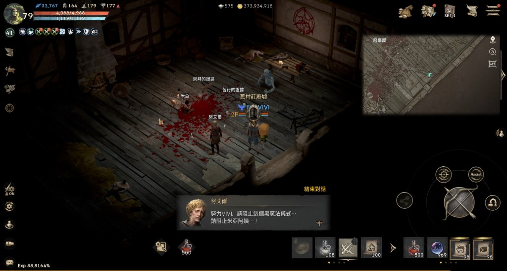 進入入口後會看到一攤血水,使用黑魔法技能。