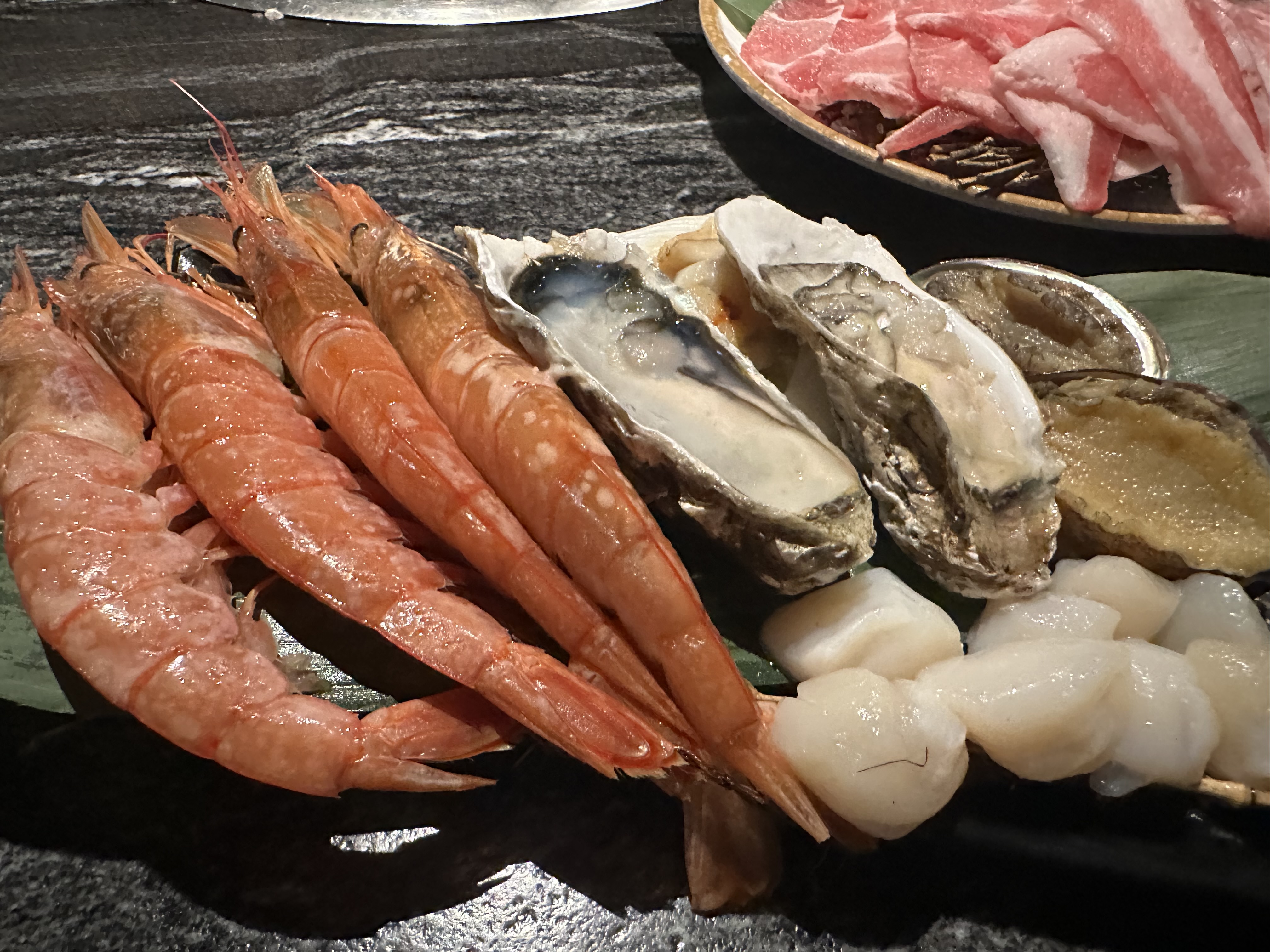 After ordering, the waiter brought us delicious prawns and oysters as appetizers, and the portion was actually quite sufficient.