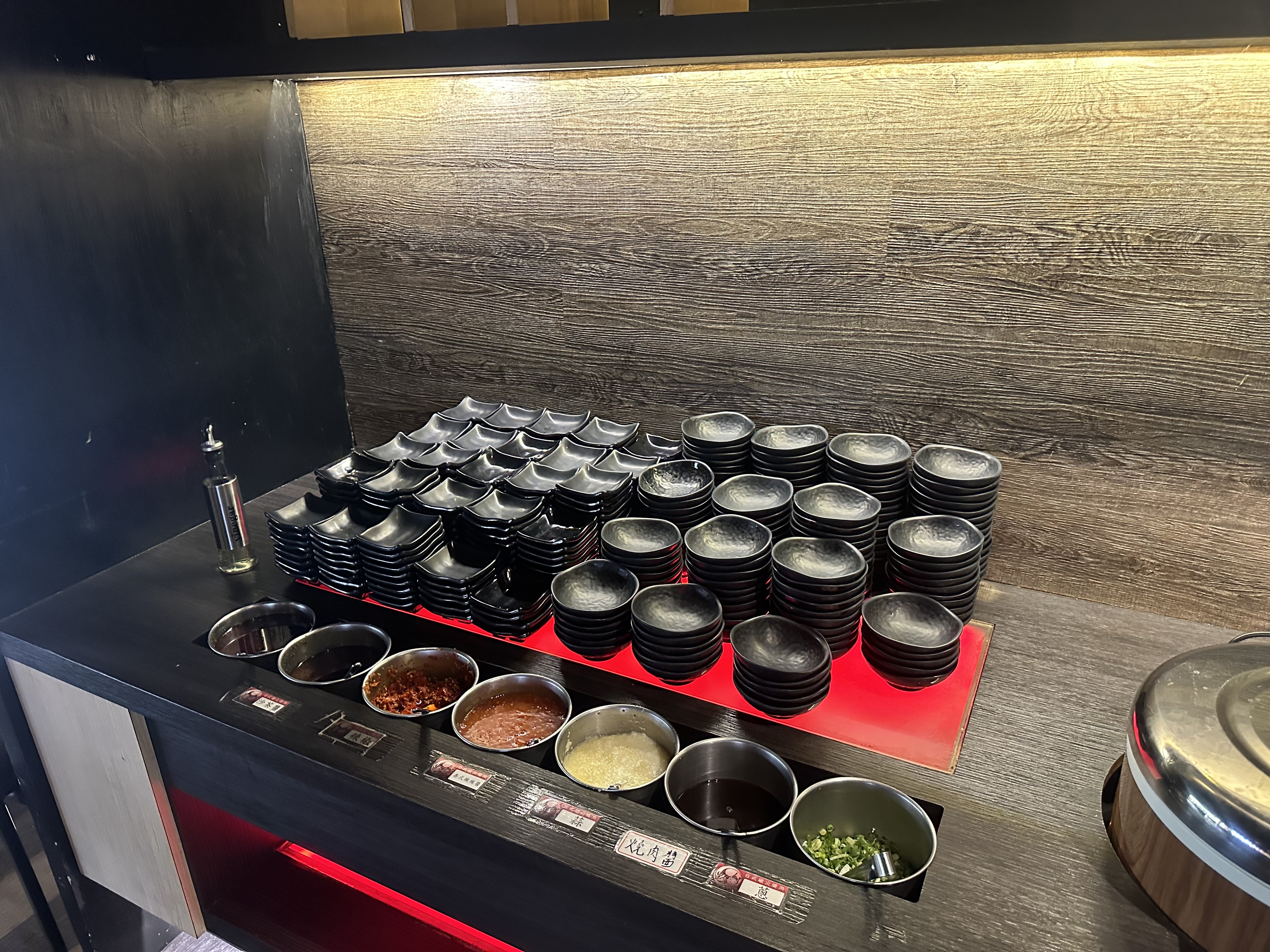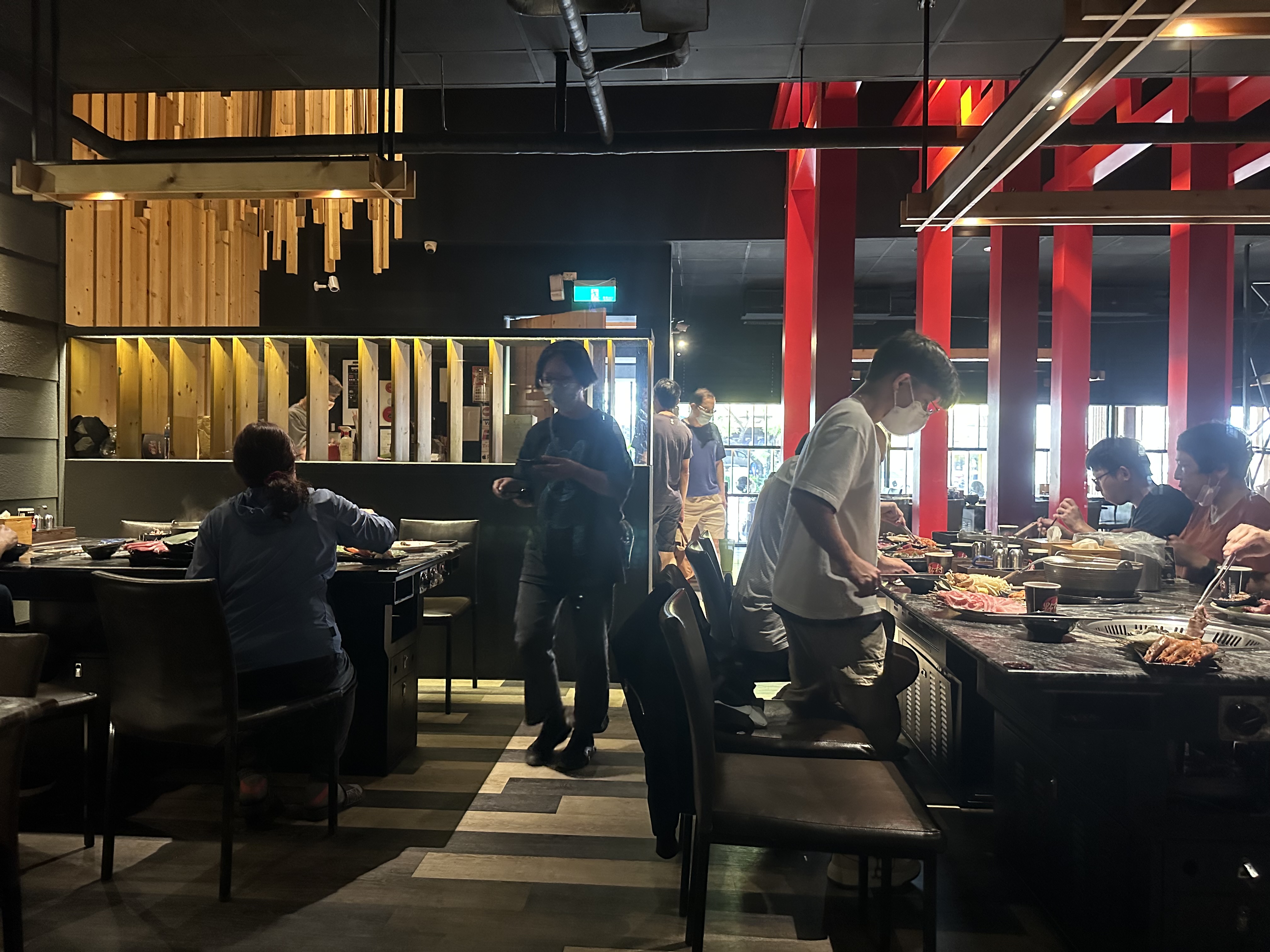 內部採黑紅樣式的裝潢,這帶給人有些沉重的感覺,但是對於燒肉店來說,具備了耐久與耐髒的功能。