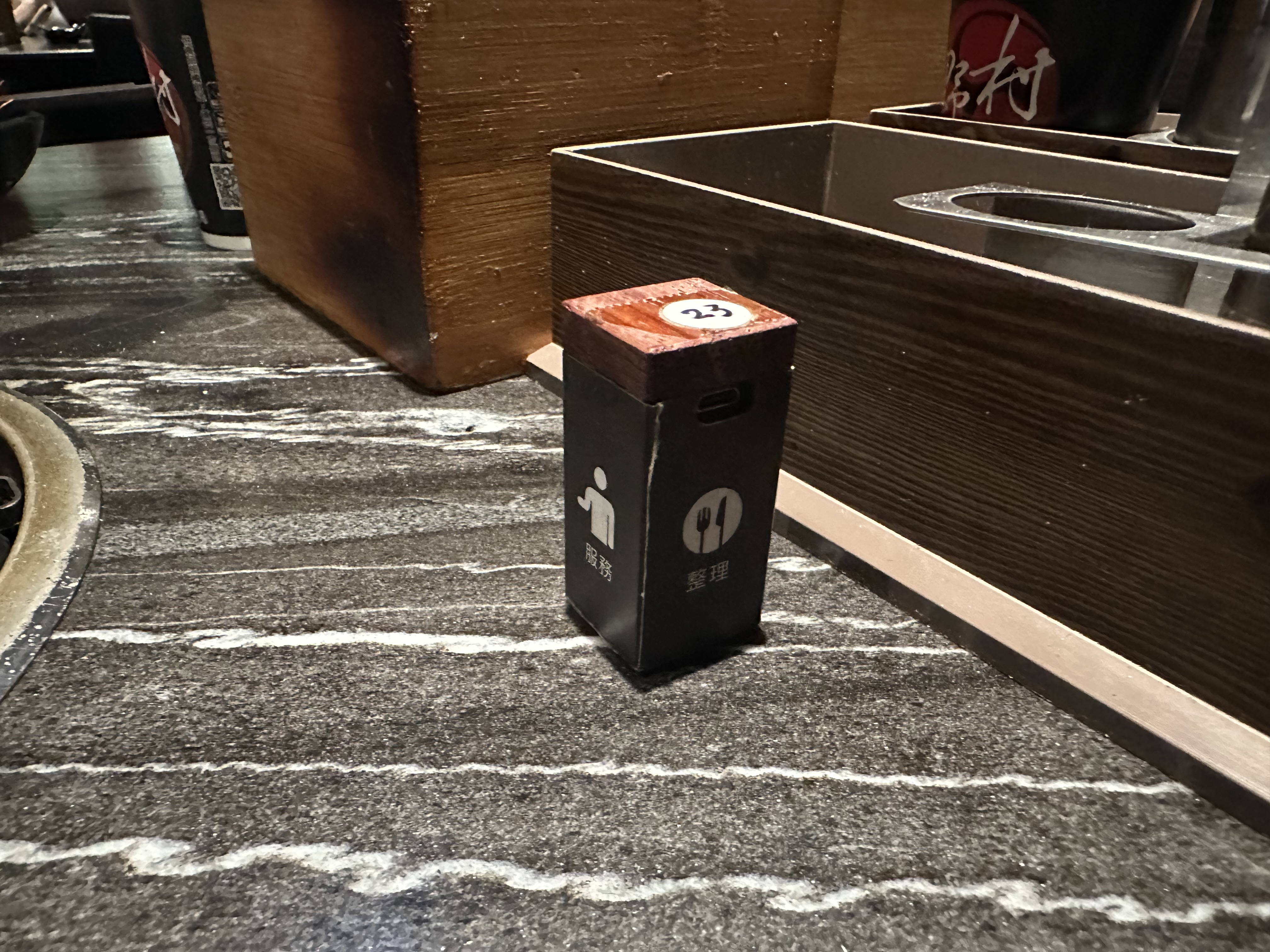 很特別的服務方塊,四個面有不同的服務,依照服務項目將方塊盒倒下去。服務生可以很快速的提供精準的服務。